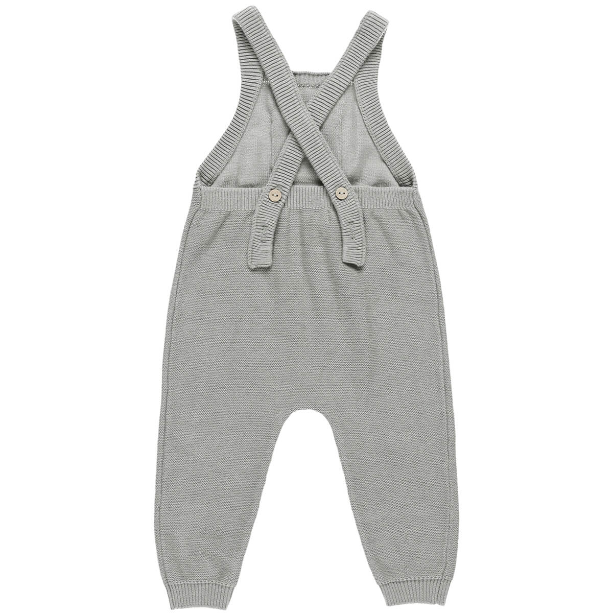 Knit Overall by Quincy Mae. This knitted overall has adjustable straps to make putting on this outfit a breeze. It also has a small rounded pocket at the centre front.