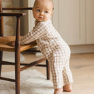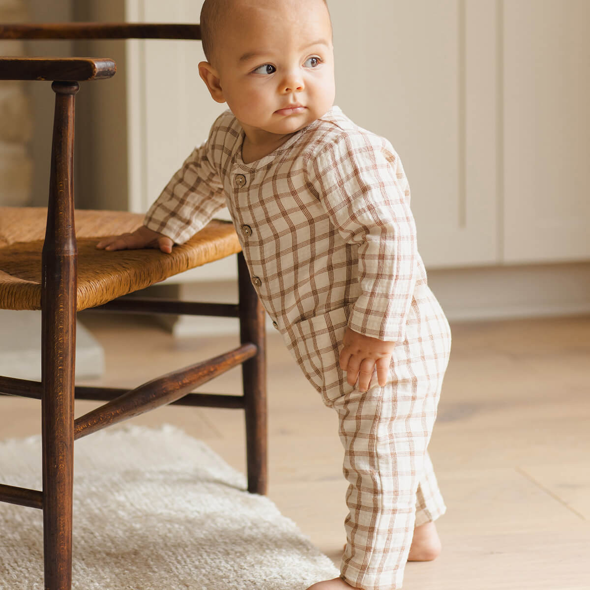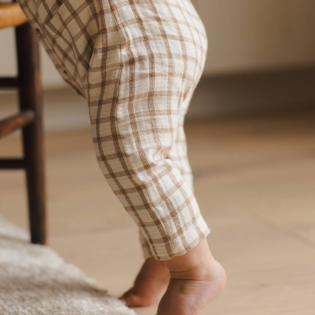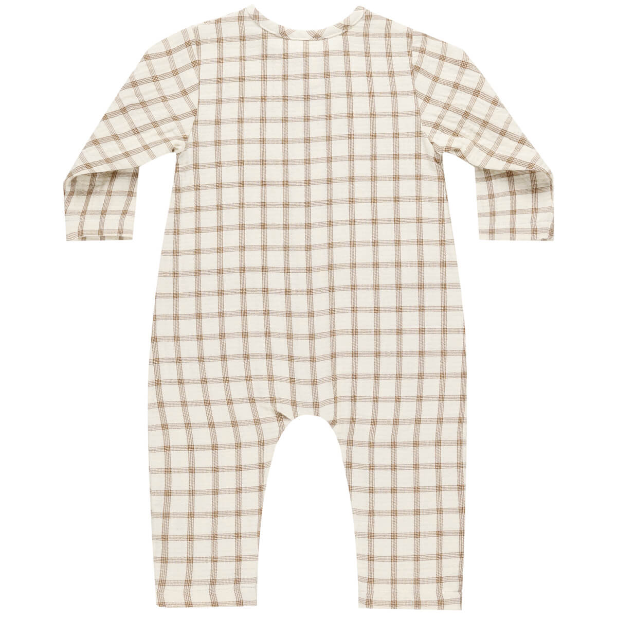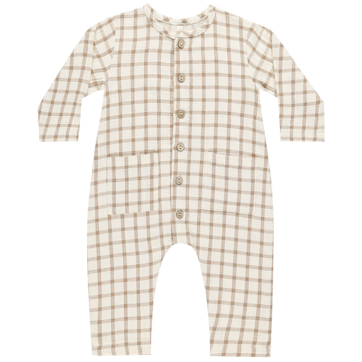 Pocketed Woven Jumpsuit in Cinnamon Plaid by Quincy Mae