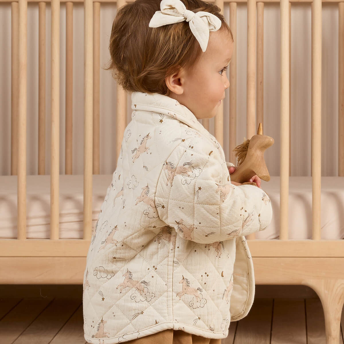 Quilted jacket by Quincy Mae. Soft quilted jacket with button-up front to keep your little one warm and stylish.