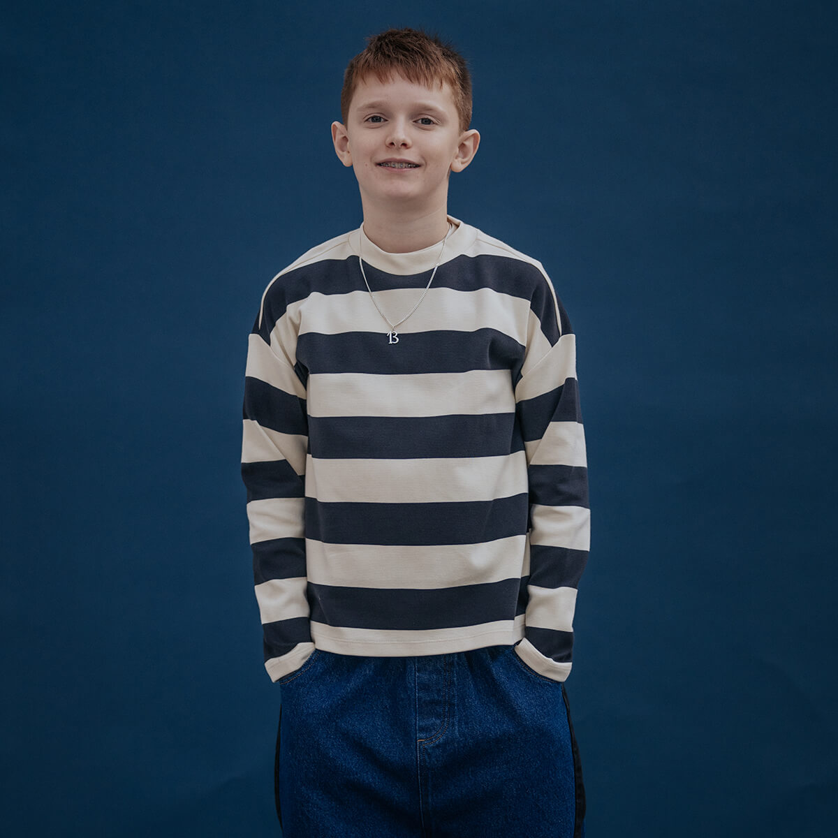 Oversized Boxy Sweater in Graphite Night Block Stripe by Repose AMS