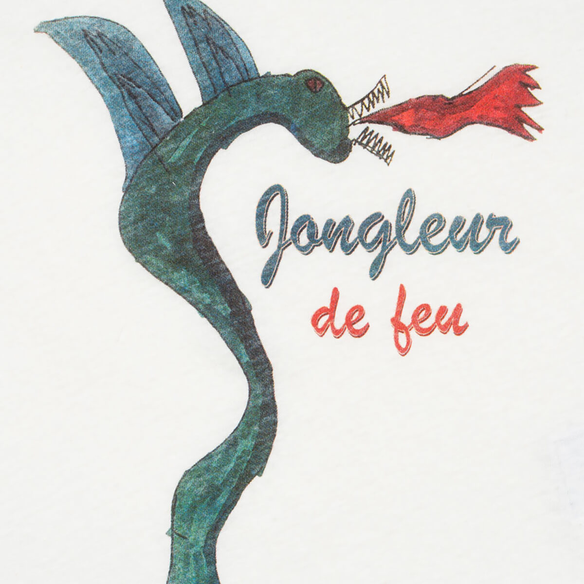 Jongleur Tee by Rosie Huntington-Whiteley x Konges Sløjd. Classic t-shirt with a fiery dragon illustration in front made by Rosie's son, Jack. The tee is made in a light and breathable linen blend with a soft texture. Classic design with short sleeves and crewneck.