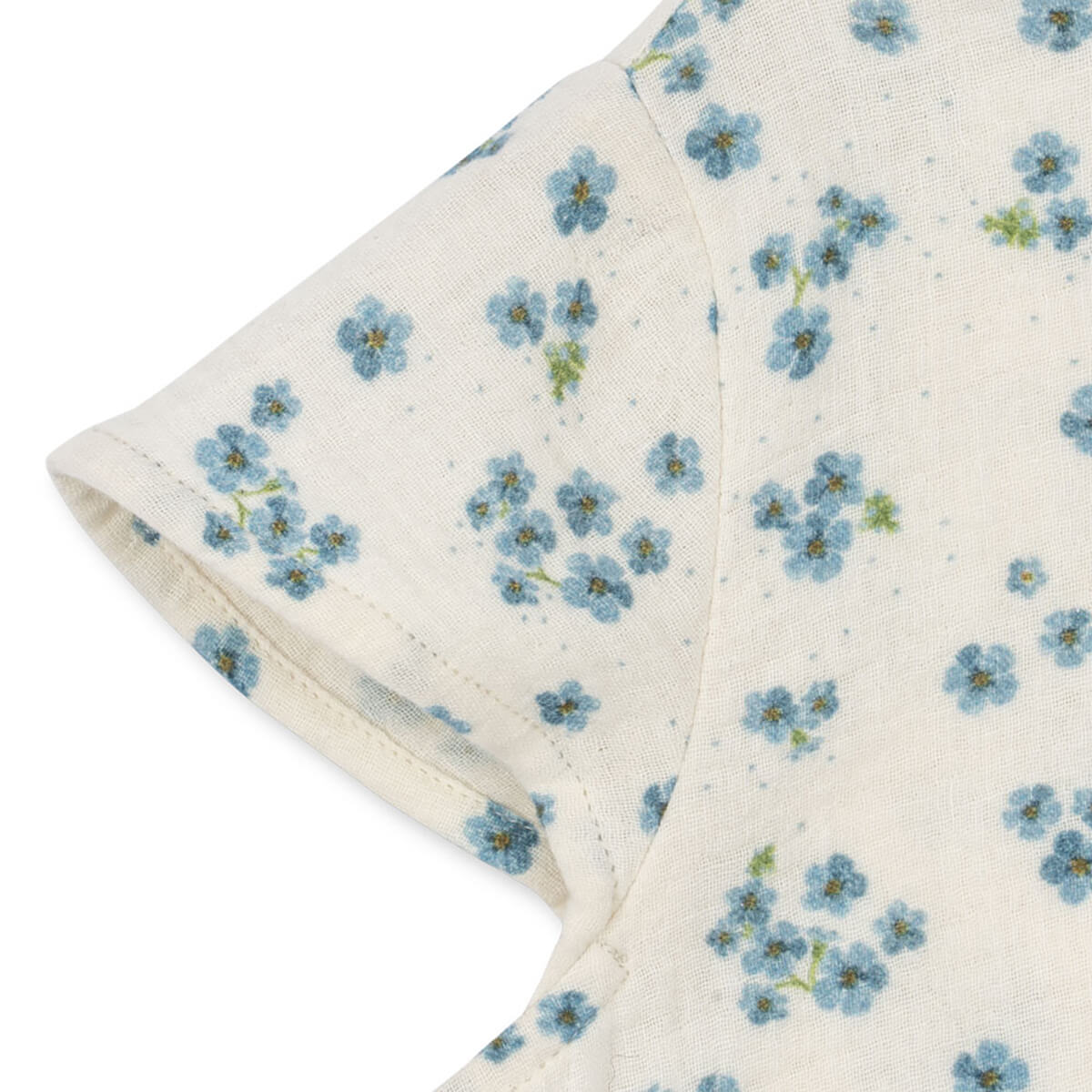 Mioblu Top by Rosie Huntington-Whiteley x Konges Sløjd. Soft short-sleeved blouse crafted in a light organic cotton muslin with a sweet forget-me-not flower print, hand-drawn as a nostalgic nod to Rosie's favourite childhood flower.