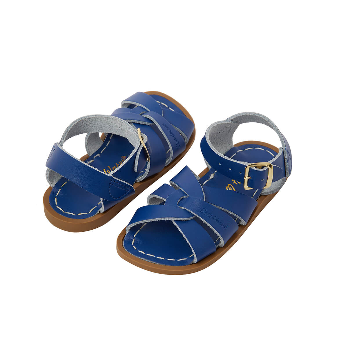 Original sandals by Salt-Water. The iconic design of the Original was first produced in the 1940’s and we’re still loving it today. The Original is known for its little-way stitched rubber sole and clever plaited leather and like all our sandals, it can be worn in water. Combining style and practicality is what we do best. Meet the Original in Cobalt, providing understated style for boys and girls.