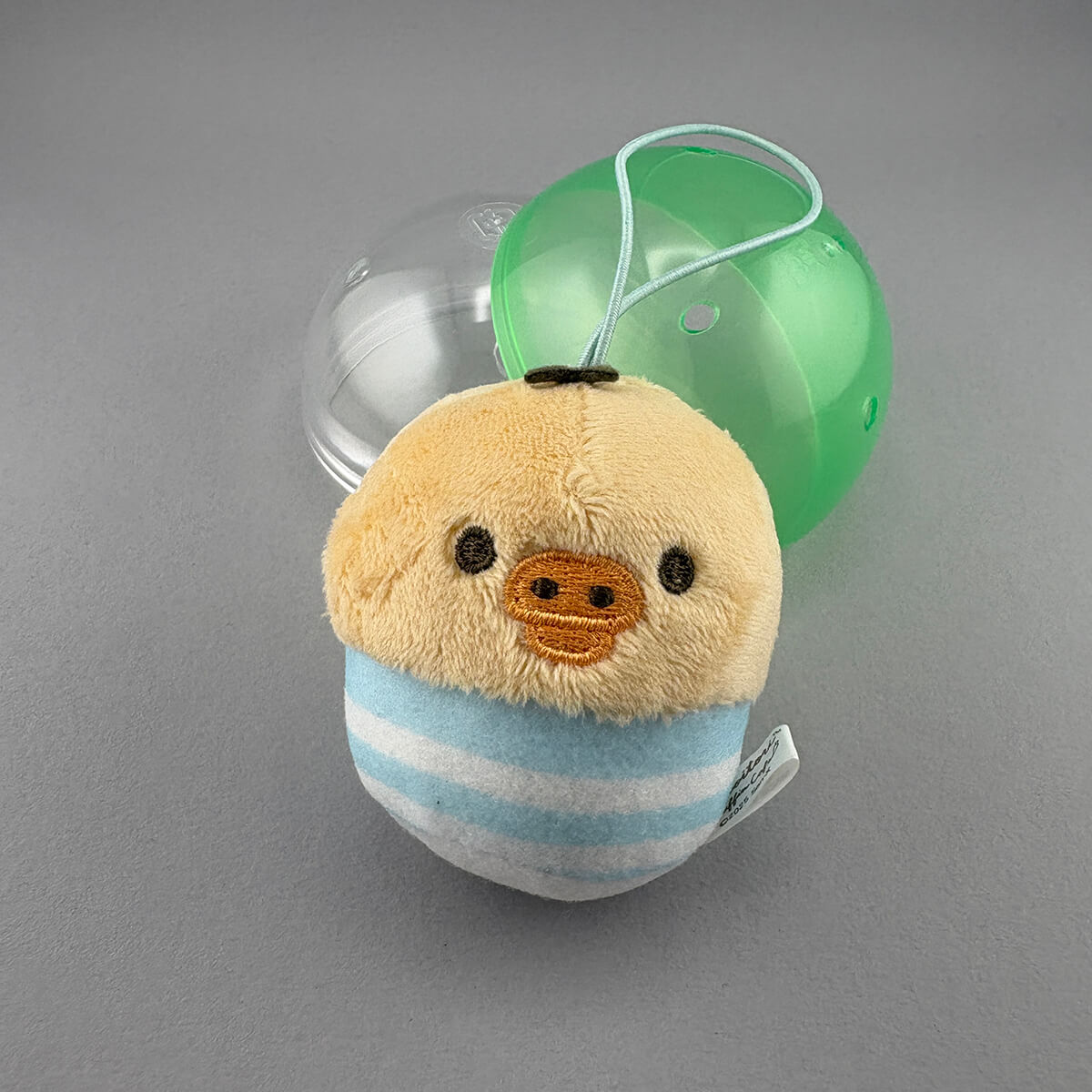 Rilakkuma Kiiroitori Muffin Cafe Mascot Light Gachapon Capsule Collectible by Koro Koro. Highly collectible and authentic Japanese gachapon capsule containing one of five different mini Kiiroitori and Rilakkuma characters in the shape of cute little plush muffins. Each comes with a ball keychain to attach to your keys, use as a bag charm and more!