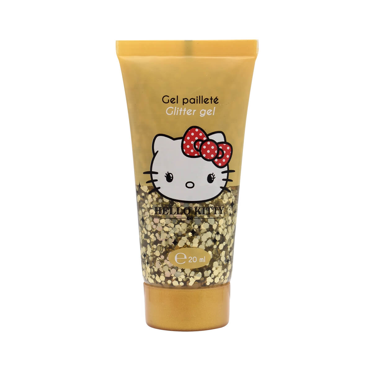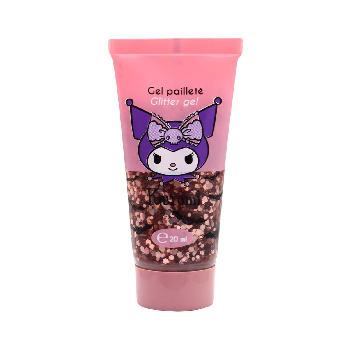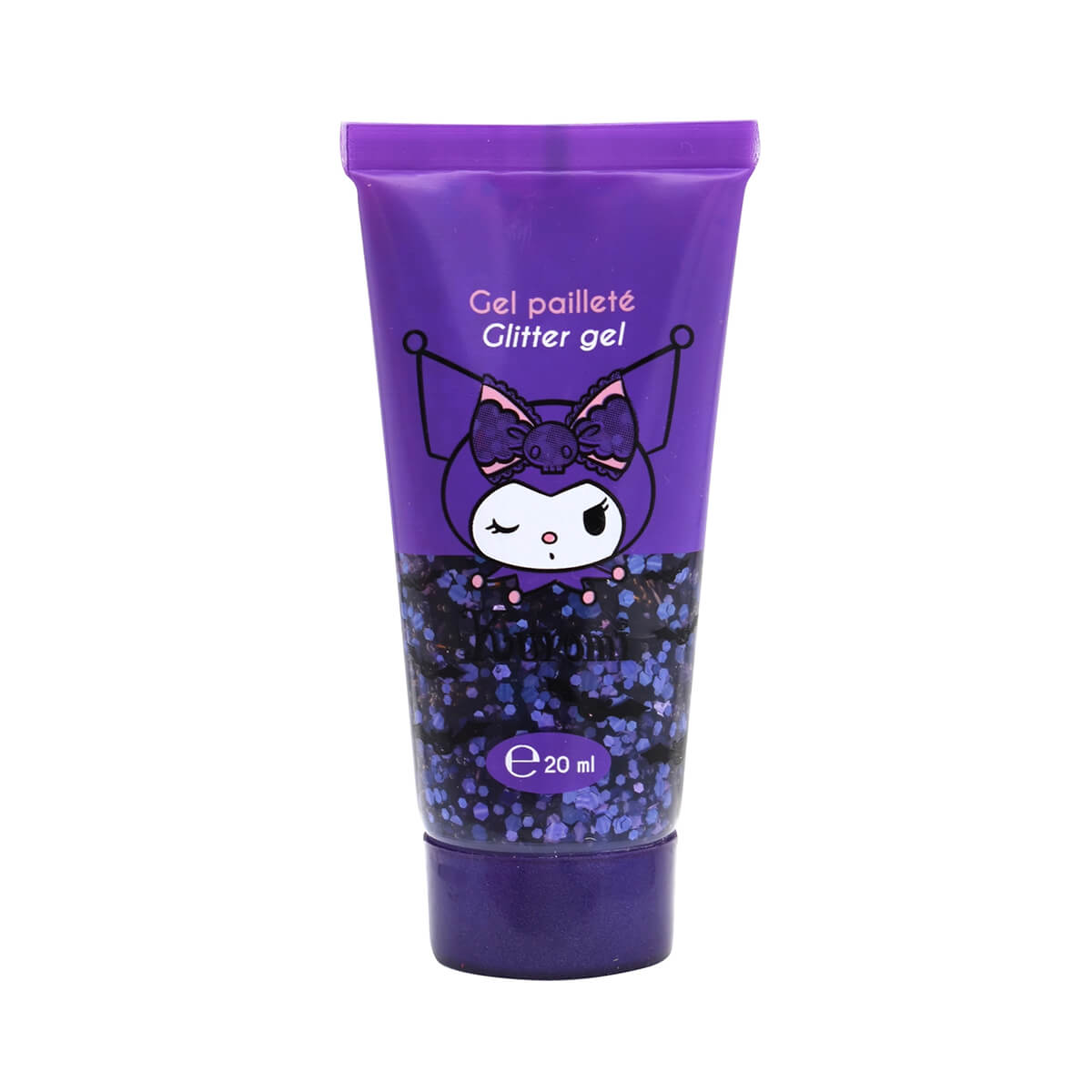 Hello Kitty & Kuromi glitter gel by Take Care. Add a sparkling touch to your looks with these 4 Glitter Gels inspired by the world of Hello Kitty & Kuromi. Perfect for brightening skin, hair, or even clothing, these gels offer bright, festive hues in a handy 20ml format. Each color is infused with fine glitter for a glamorous and luminous effect.