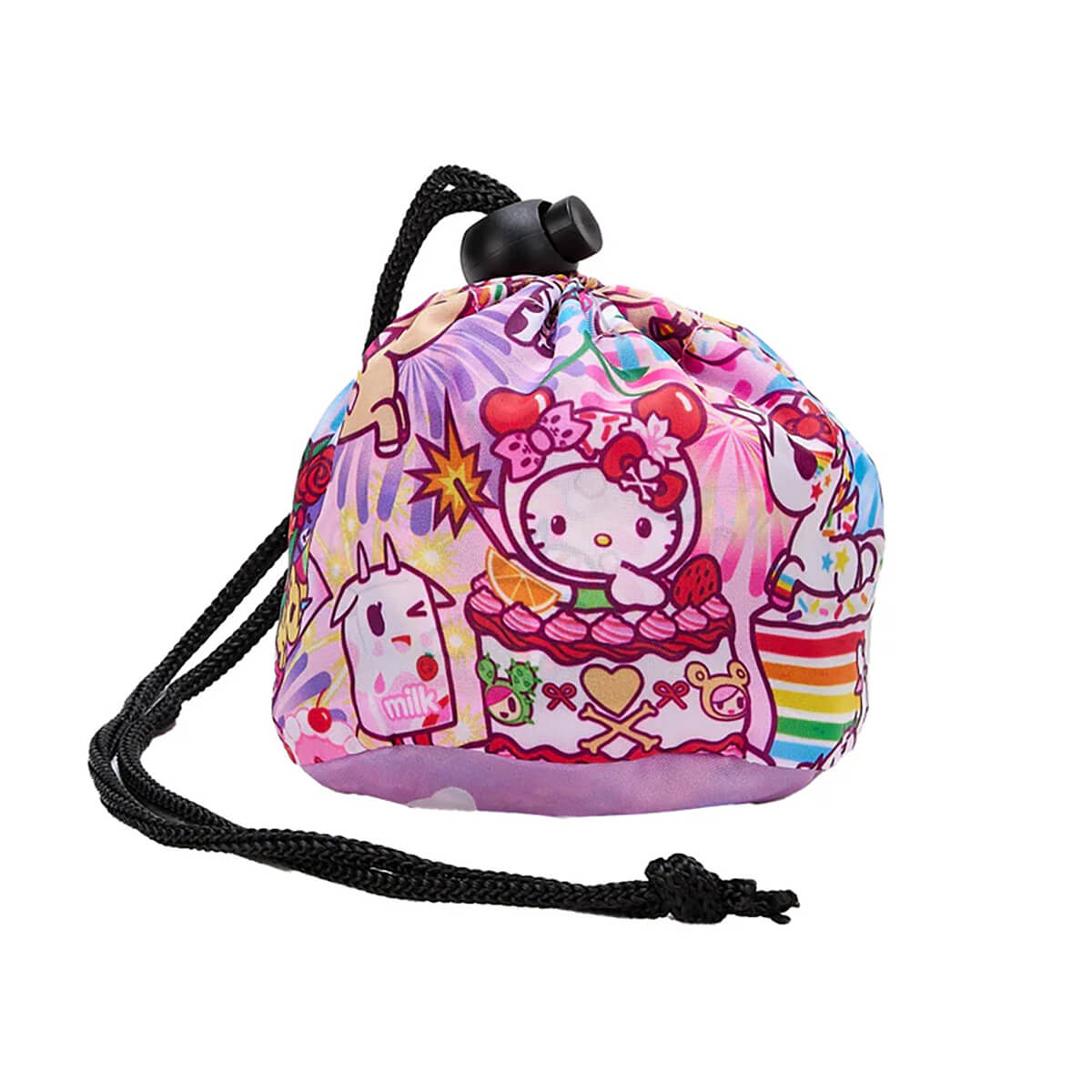Tokidoki x Hello Kitty Birthday Bash Reusable Shopping Tote by Tokidoki. This reusable tote can be folded and stored away in the attached pouch. All over graphic Hello Kitty Birthday Bash print with celebratory cakes and your favourite Tokidoki characters too.