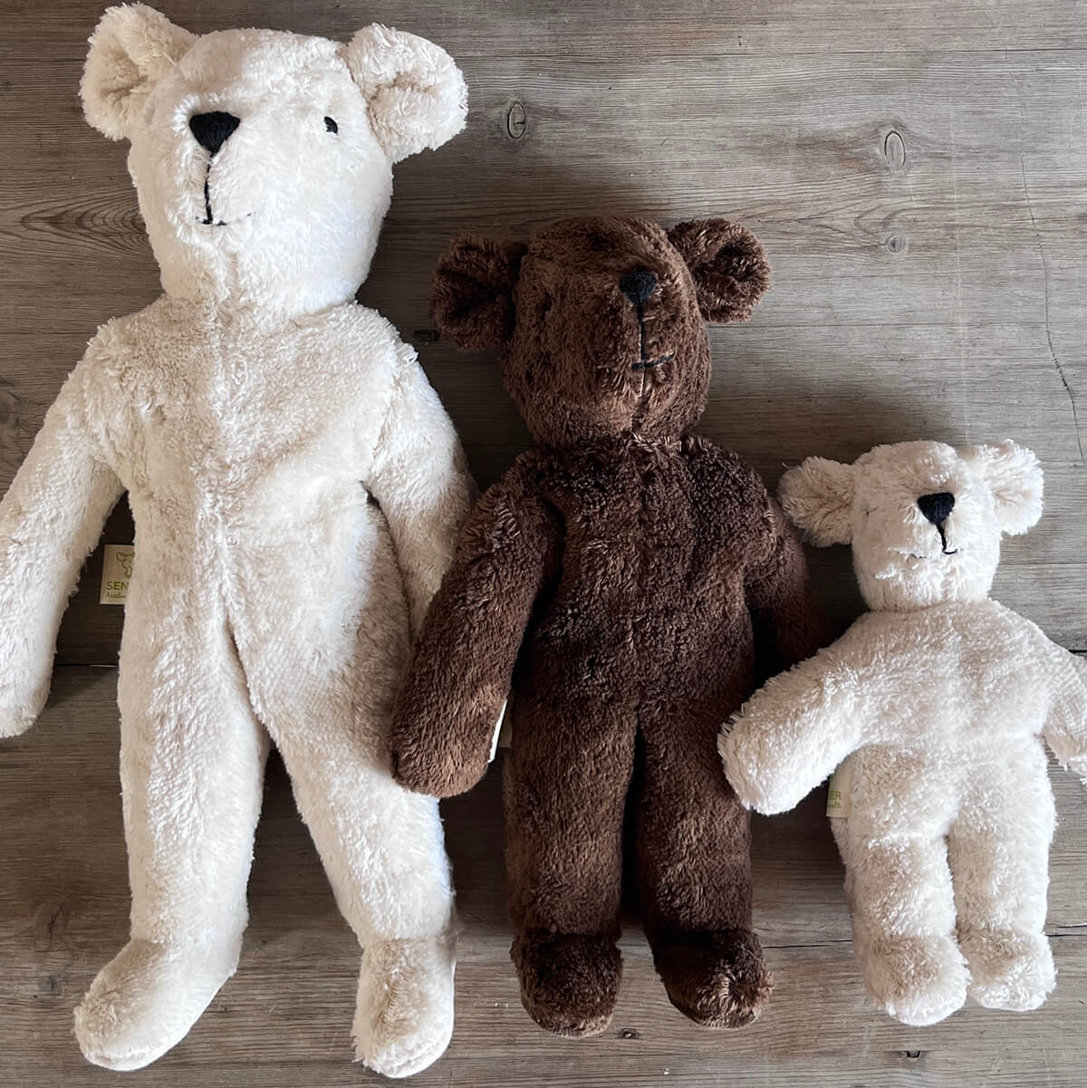 Large white bear floppy animal by Senger Naturwelt. Gorgeous bear soft toy made of ecological organic cotton plush and sheep‘s wool making them both super soft, and also safe if put in the mouth.