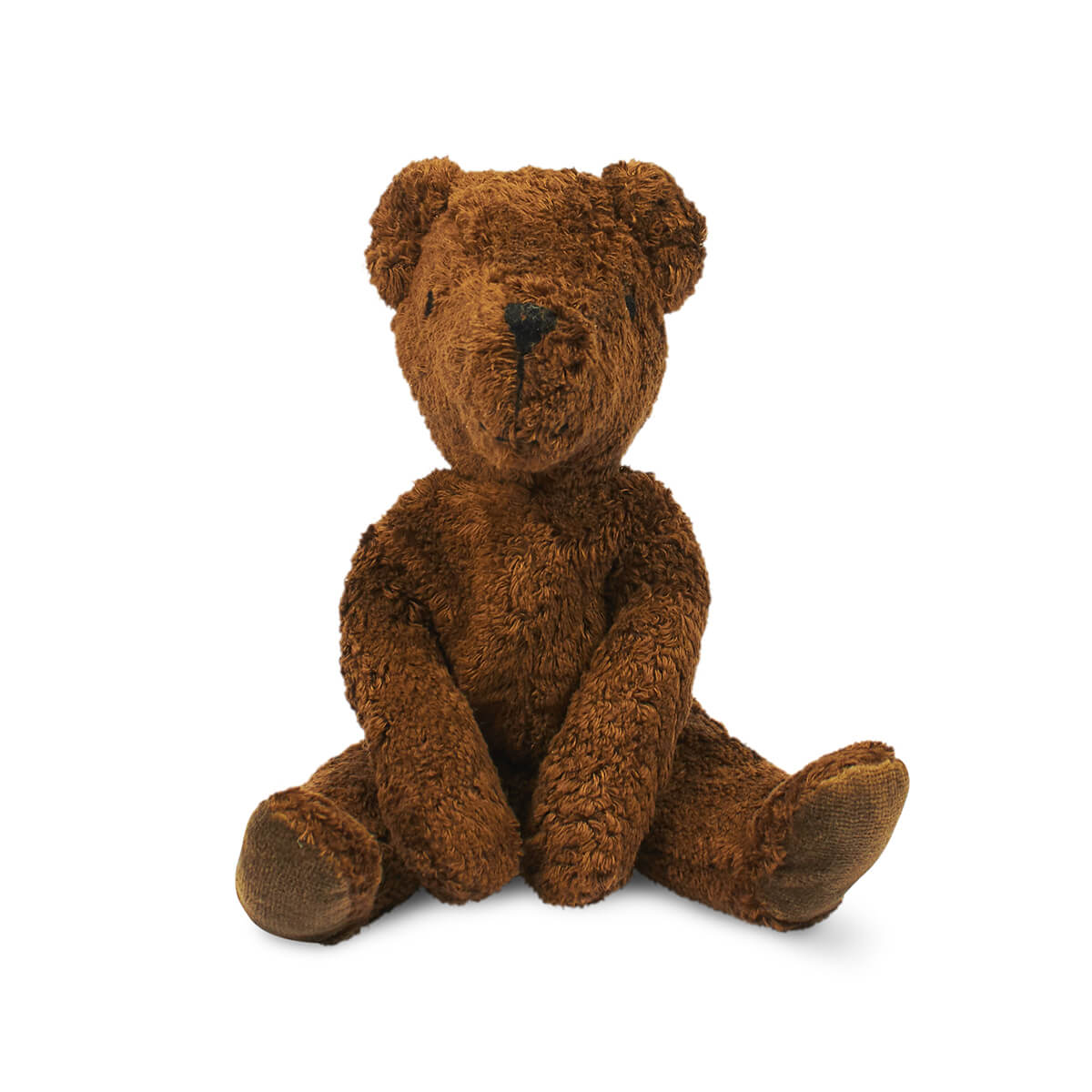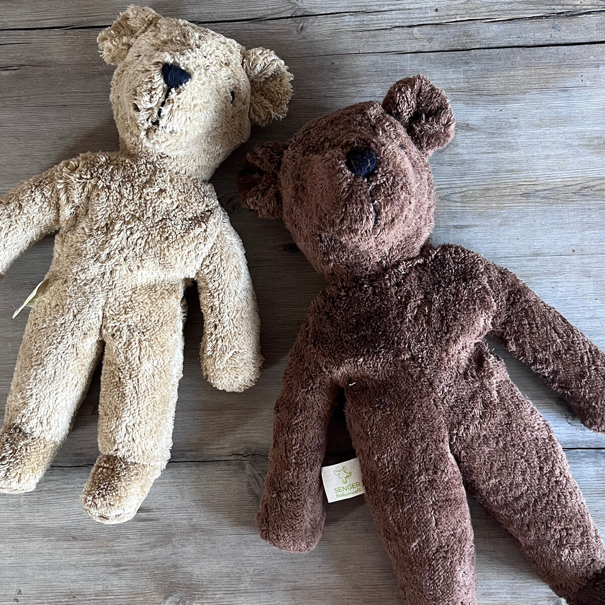 Small brown bear floppy animal by Senger Naturwelt. Gorgeous bear soft toy made of ecological organic cotton plush and sheep‘s wool making them both super soft, and also safe if put in the mouth.