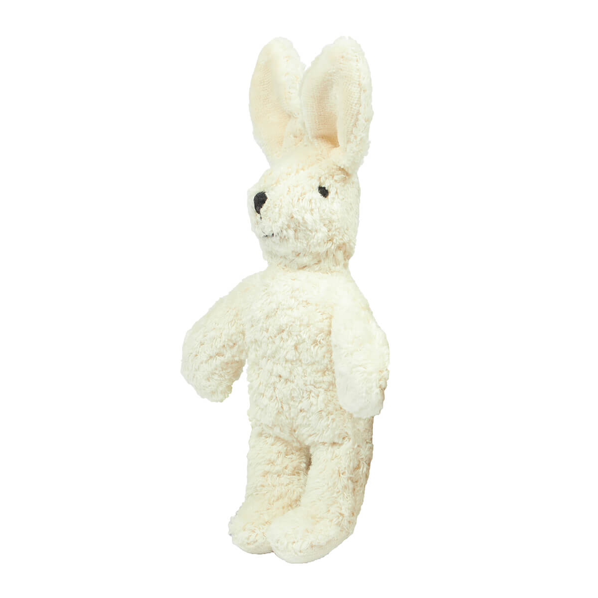 White rabbit animal baby by Senger Naturwelt. Gorgeous soft toy perfect for the smallest hands. Made entirely of sustainably-produced organic cotton plush, and can safely be sucked or chewed.