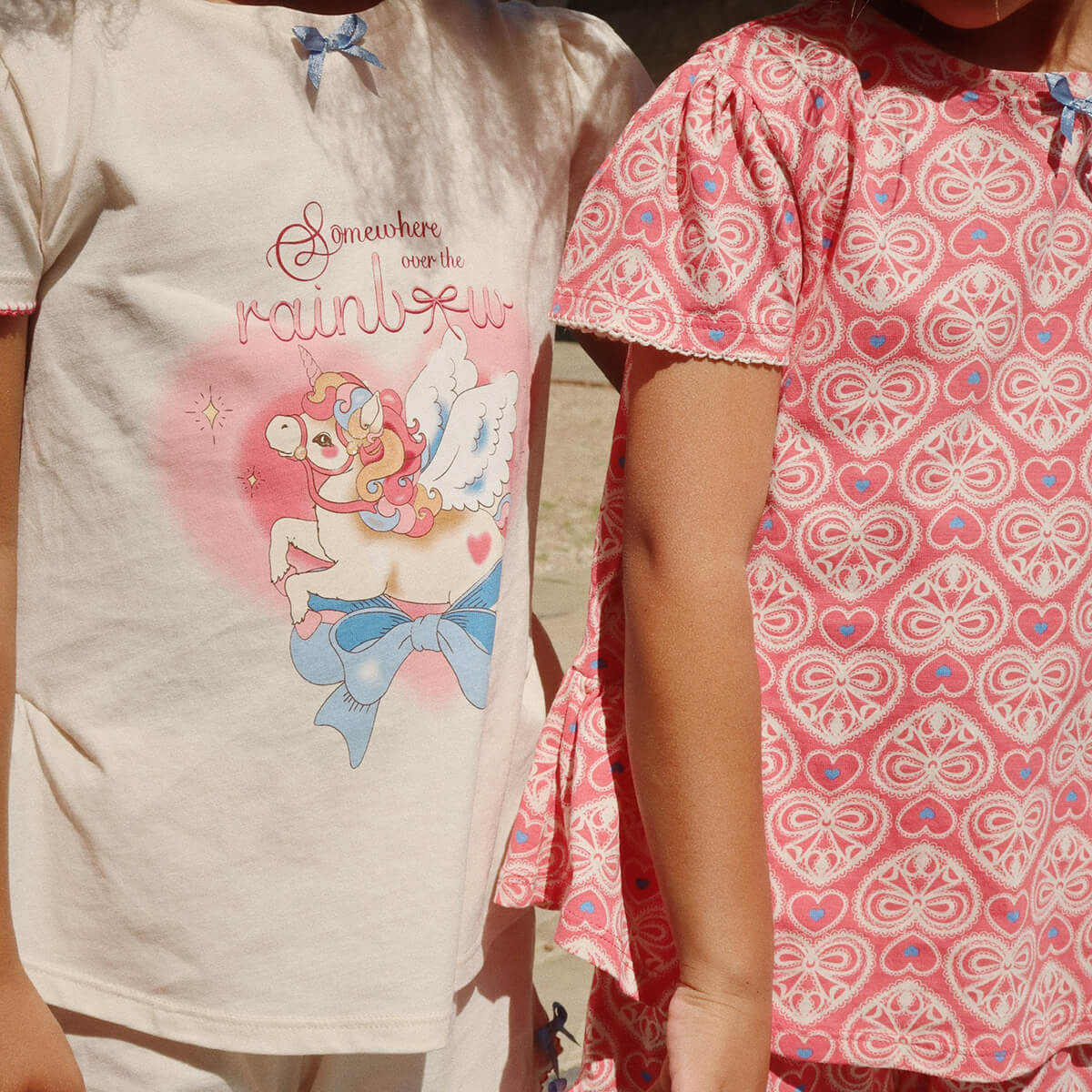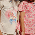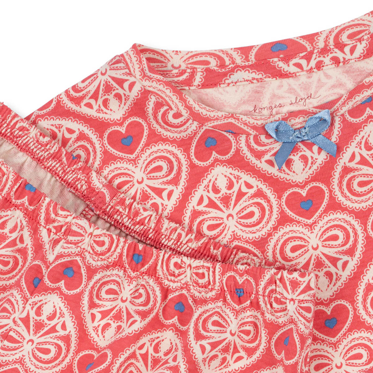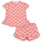 Famo Frill Set by Konges Sløjd. Two-piece cotton t-shirt and shorts set with a matching tee and shorts with frills. The tee features snap buttons on the left shoulder up to 18 months for easier dressing.