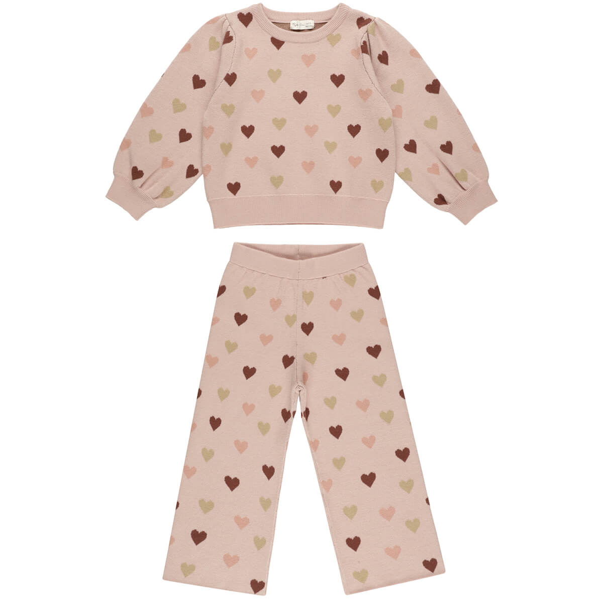 Jacquard Knit Set in Hearts by Rylee & Cru. A cosy knited top and pant set in an all over heart print.