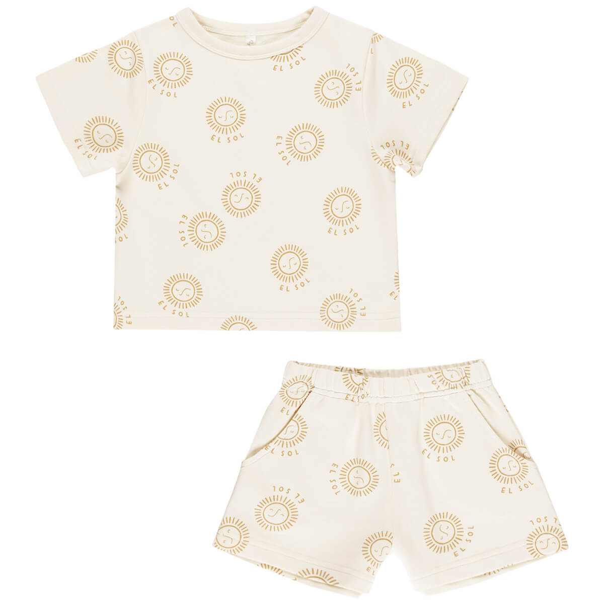 Play Set by Rylee & Cru. A short sleeved jersey t-shirt top with co-ordinating pocket shorts.