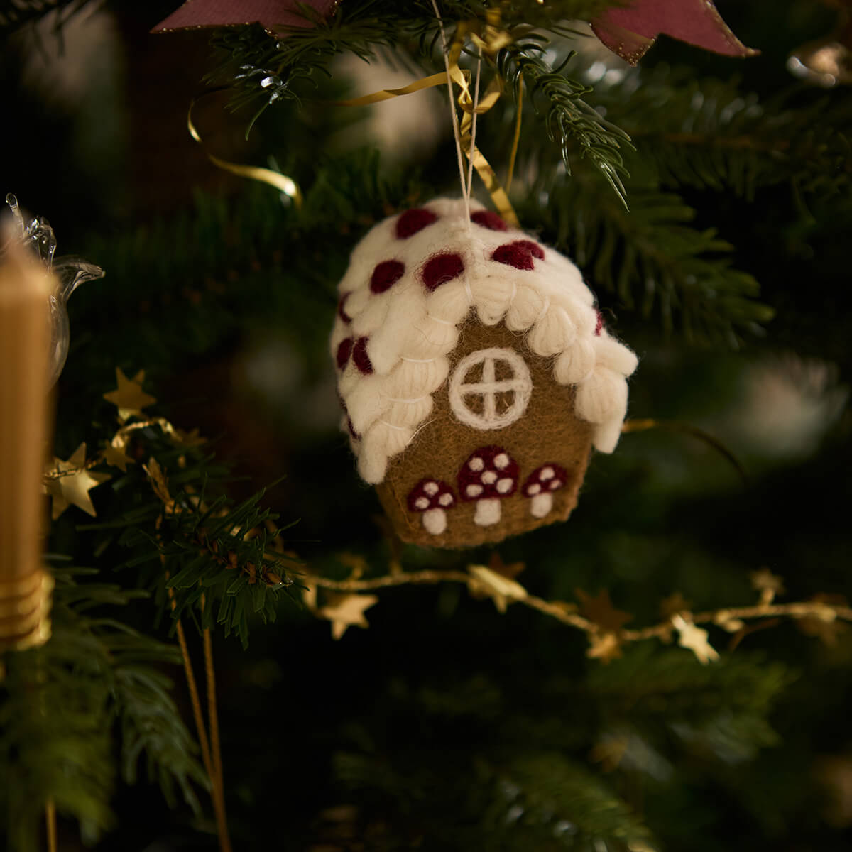 Gingerbread House With Mushroom Christmas Decoration by Shirley Bredal