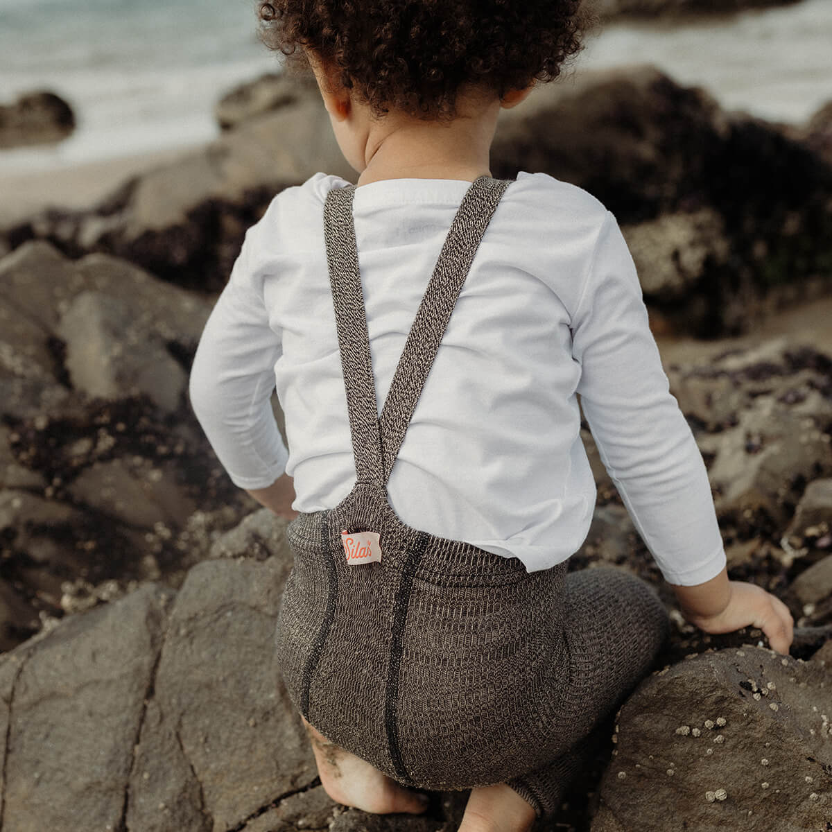 It is important that your little one always wears the tights with braces in the correct way (as shown in all our pictures) with one brace securely placed on the left shoulder and the other brace on the right shoulder in order to avoid abrasions. The braces help little adventurers to freely move while playing and exploring the world and should be always used in the correct position.