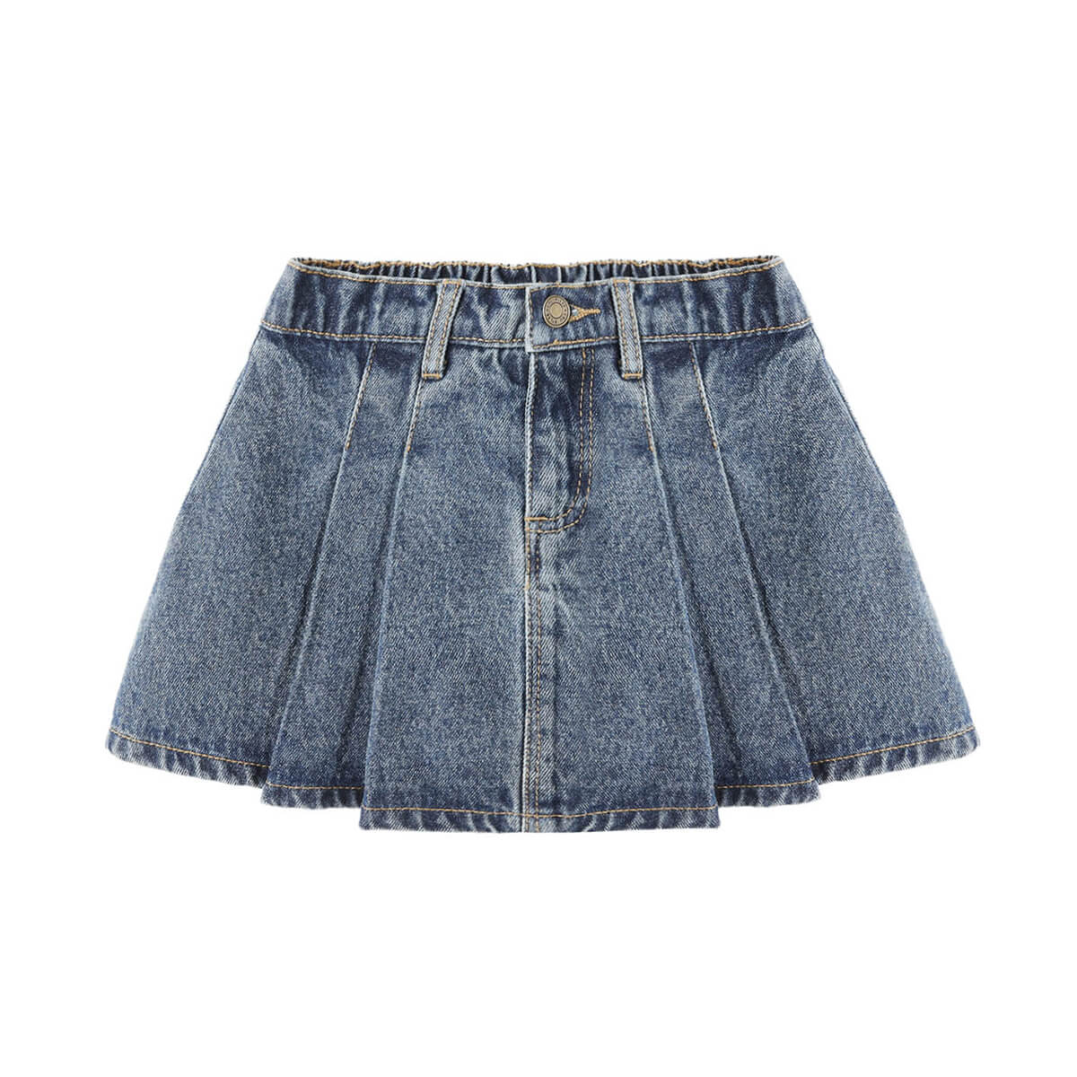 Pleated Denim Skirt in Indigo Denim by Rylee & Cru