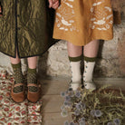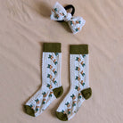 Farandole Socks With Hair Bow in Green/Ecru by Bonjour