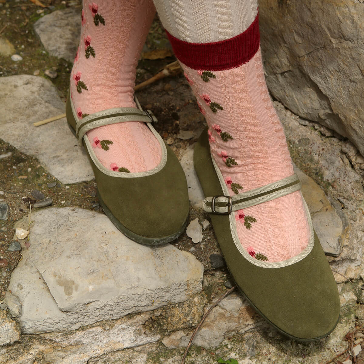 Farandole Socks With Hair Bow in Red/Pink by Bonjour