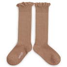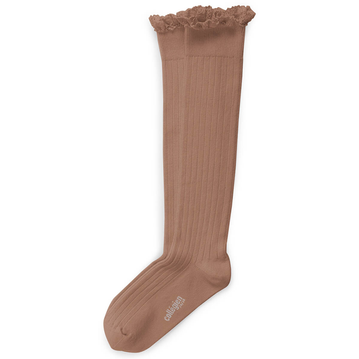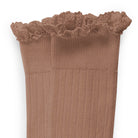 Josephine Lace Trim Ribbed Knee High Socks in Petite Taupe by Collegien