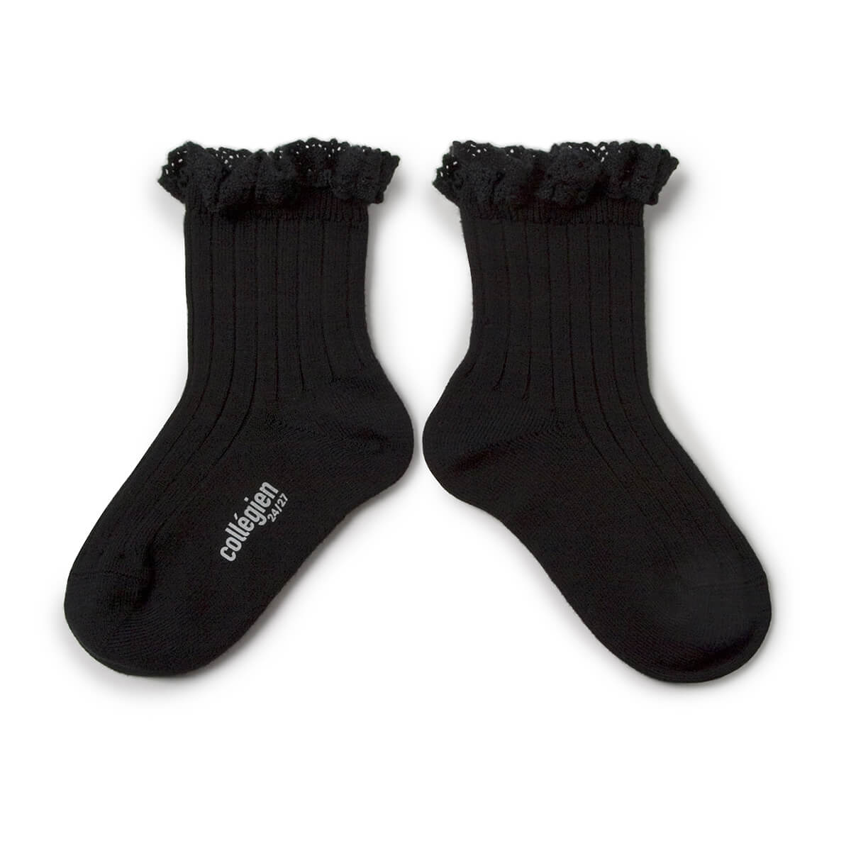 Lili Lace Trim Ribbed Ankle Socks in Noir De Charbon by Collegien
