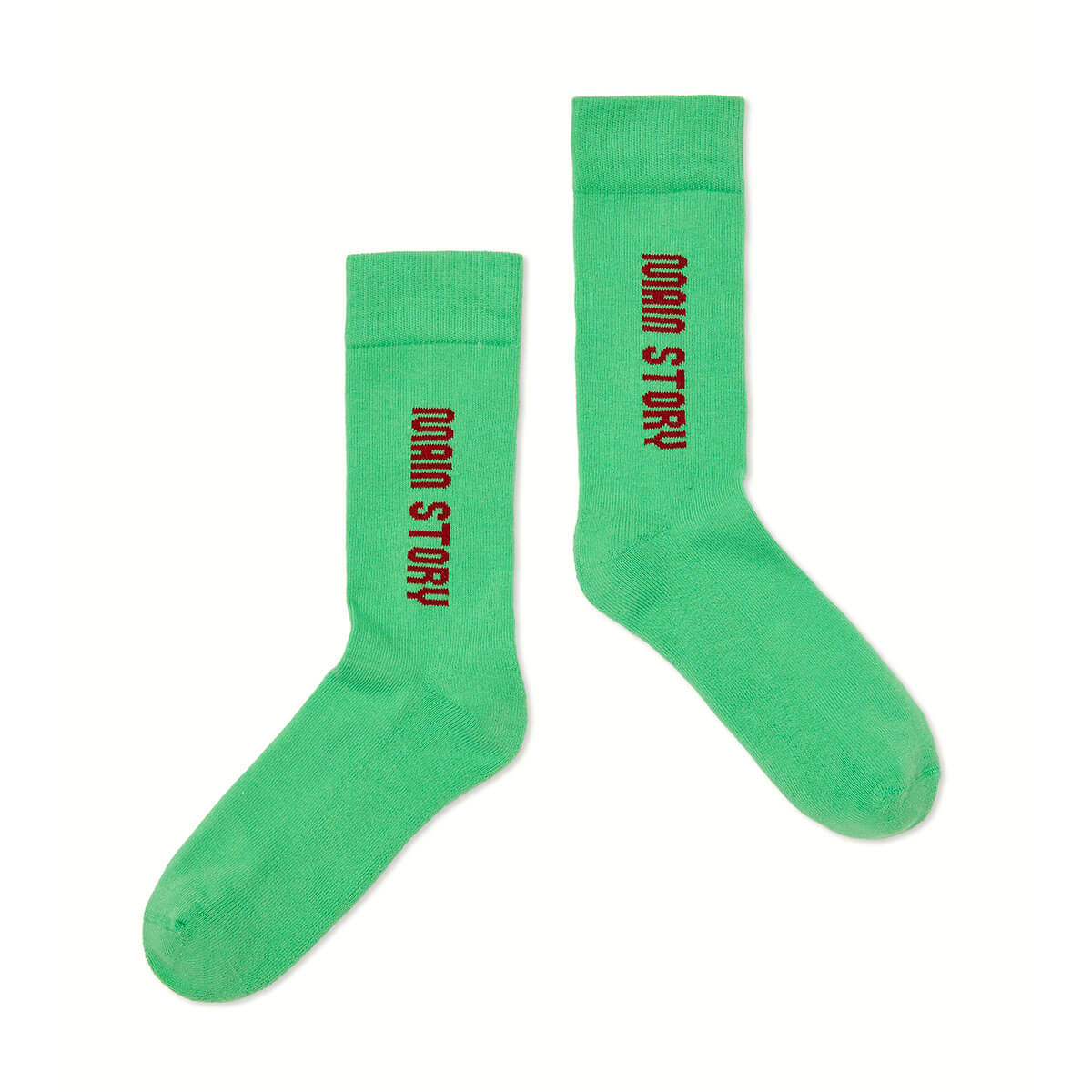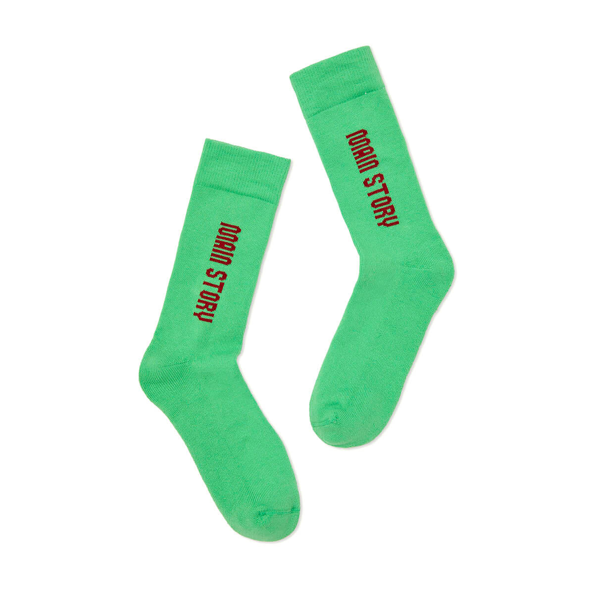 Socks by Main Story. Mid-calf socks for comfortable toes with a Main Story jacquard motif.