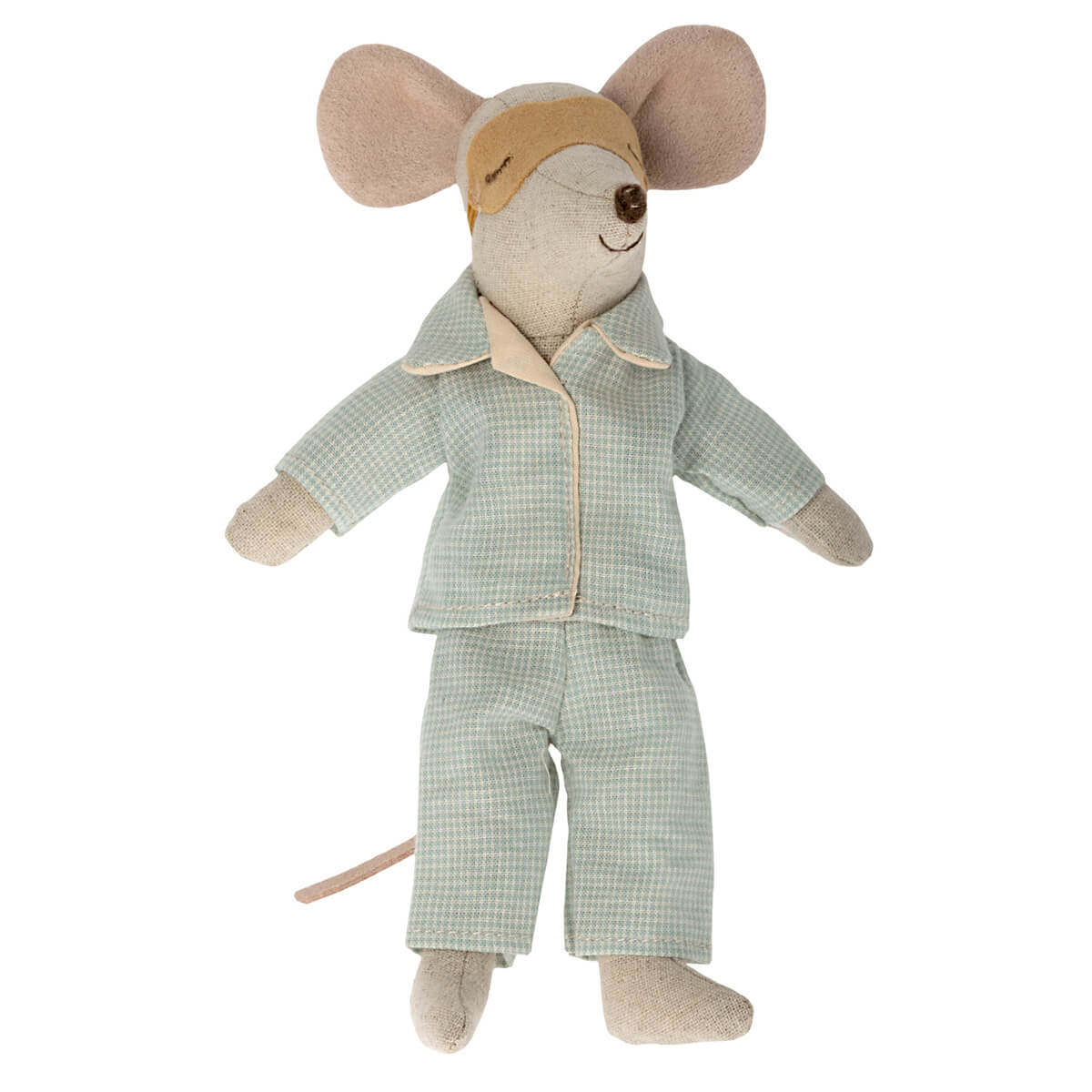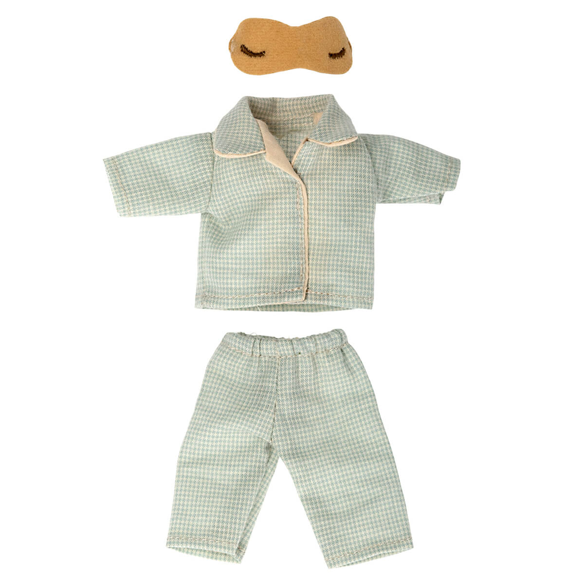 Pyjamas for mum mouse by Maileg. Sweet sleepwear set including a check shirt and pants and eye mask for a good night's sleep.