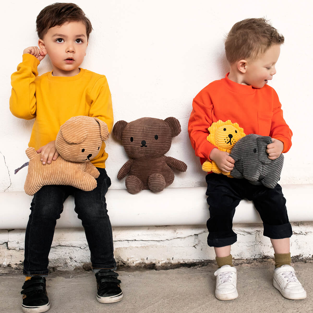 Corduroy elephant soft toy by Bon Ton Toys. Chunky corduroy elephant with embroidered features. Based on the original illustrations by Dick Bruna.