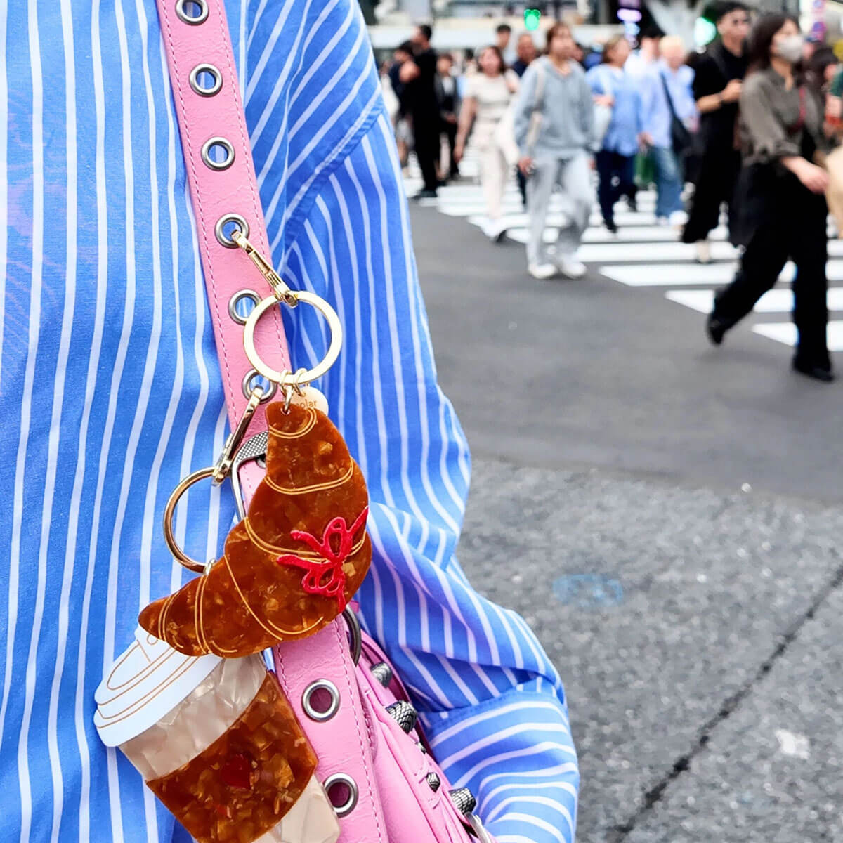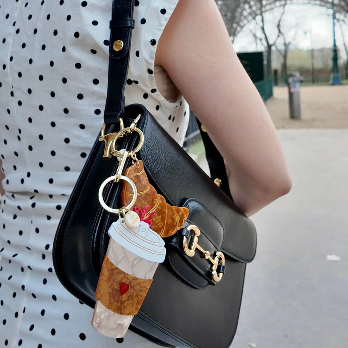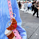 Bow Croissant Bag Charm by Solar Eclipse. Hand-painted by the Solar Eclipse artists, the original bow croissant bag charm is crafted in small batches. It's designed to upgrade your favourite bag or set of keys. Designed in New York City, the double-sided charm is hand-painted on both sides, for an iconic look from all angles. Crafted with super-strong biodegradable acetate, this versatile piece can be used as a bag charm or a statement keychain.