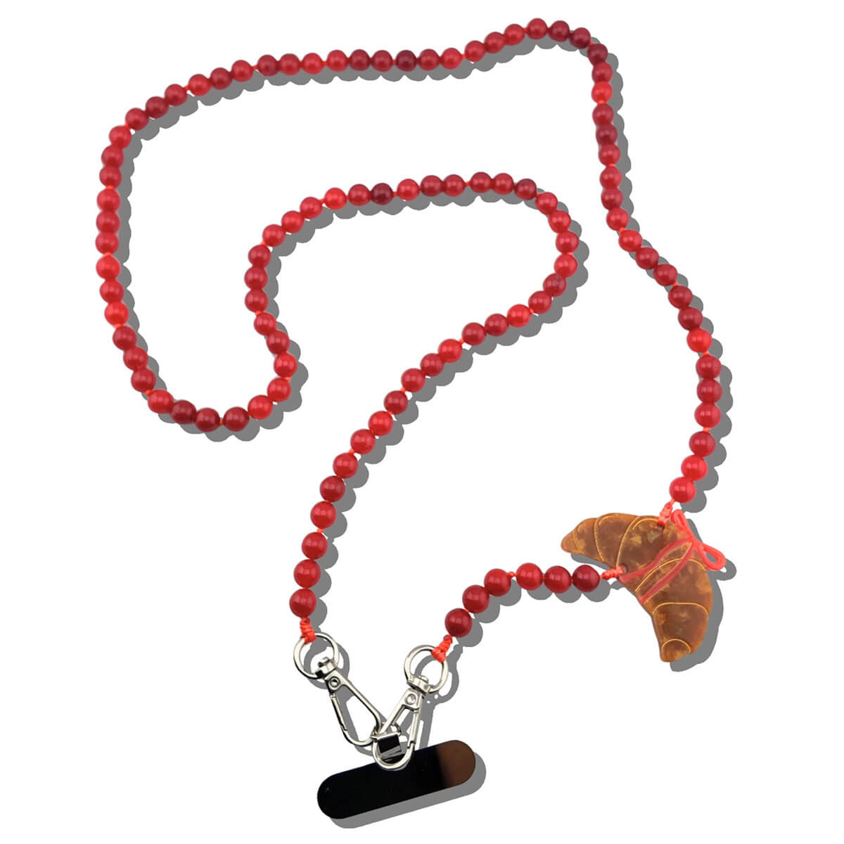 Bow Croissant Crossbody Phone Chain by Solar Eclipse. Works with your existing phone case meaning its perfect for going hands-free. The original bow croissant crossbody phone chain is a New York designed essential made to move with you. Crafted in small batches and finished with hand-painted charm, it's a smart, functional upgrade to your daily routine.