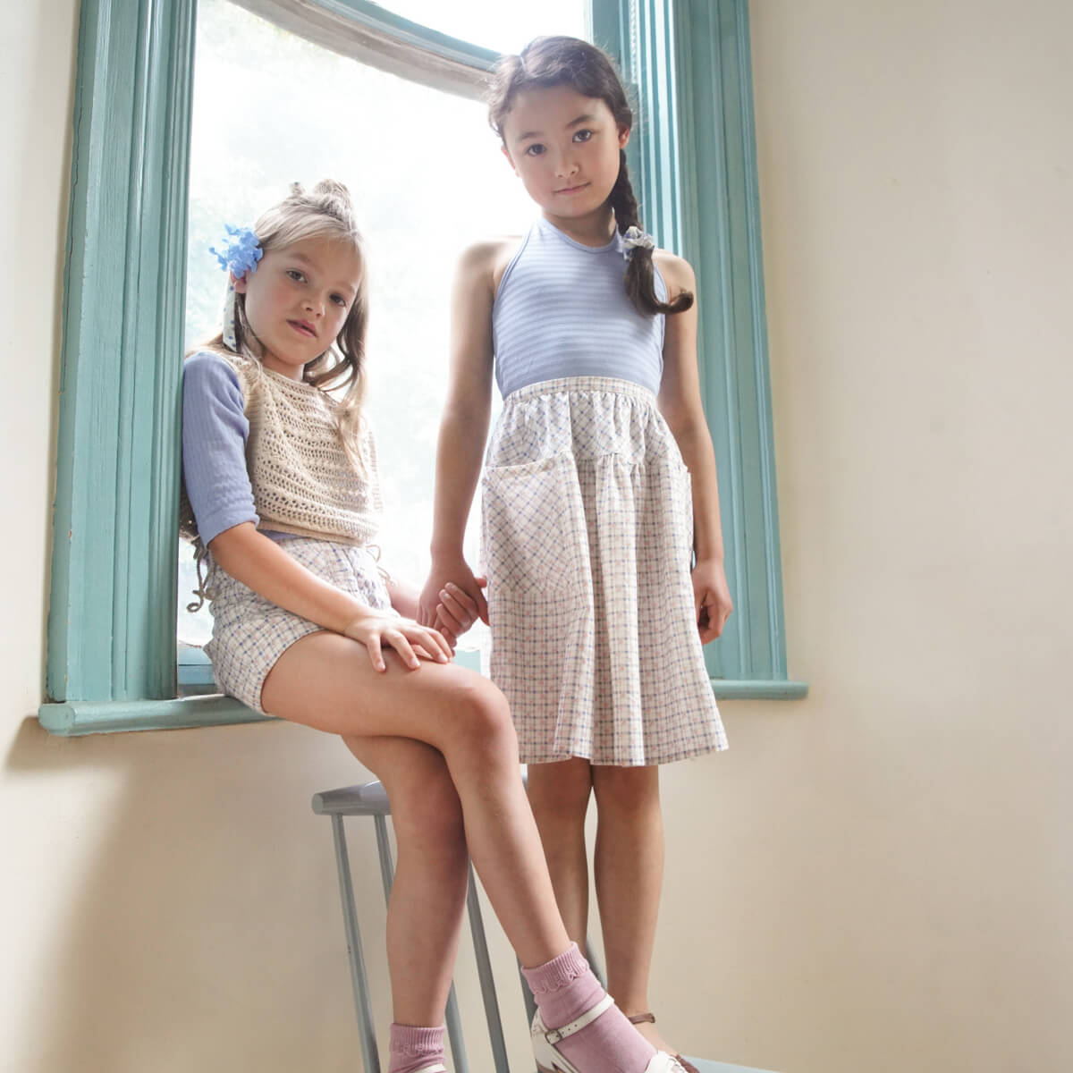 Vada Skirt in Checker Rose Print / Blueberry by Soor Ploom