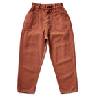 Vesper Trousers by Soor Ploom. Workwear inspired jean with a hidden button and zip fly closure. Relaxed fit with a light tapered leg. Details include belt loops, shaped pockets and coin pocket. Double patch pocket at back, with half elastic for ease.