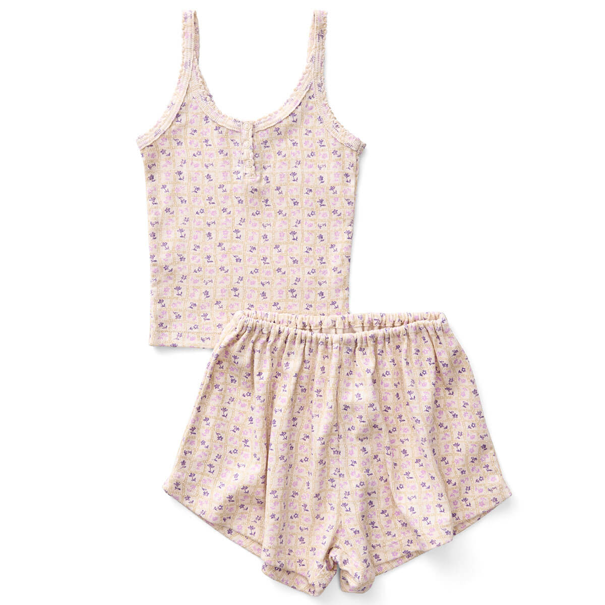Favorite Set by Soor Ploom. Camisole and flowy short set in the softest organic pima cotton. Row of snaps and scallop stitch detail at straps and neck, elastic at bottom wasit.