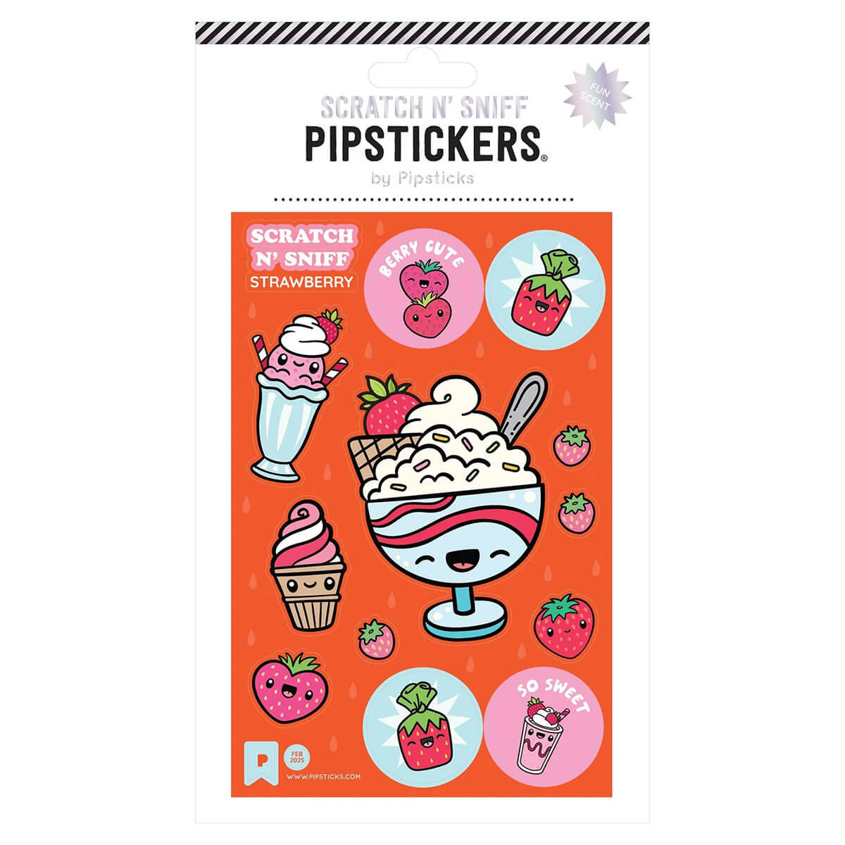 Includes one 4" x 6" sheet of Berry Chilly Scratch 'n Sniff strawberry scented PipStickers.