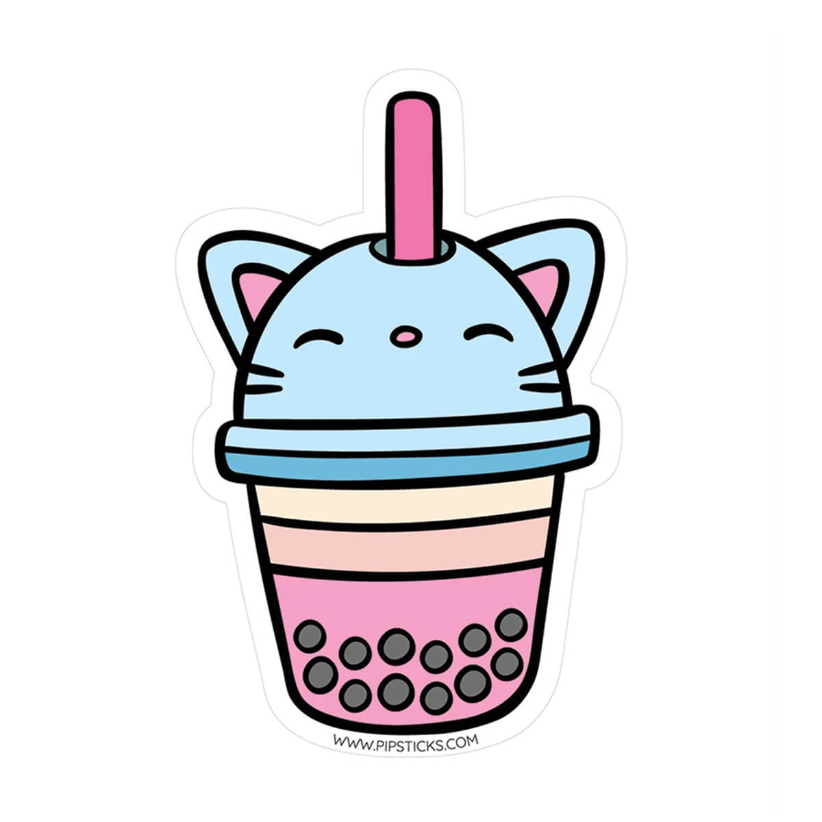 Boba Kitty Vinyl Sticker by Pipsticks. PipStickers are the perfect gift for the sticker lover in your life! These unique vinyl designs are water & UV resistant and cannot be found anywhere else.