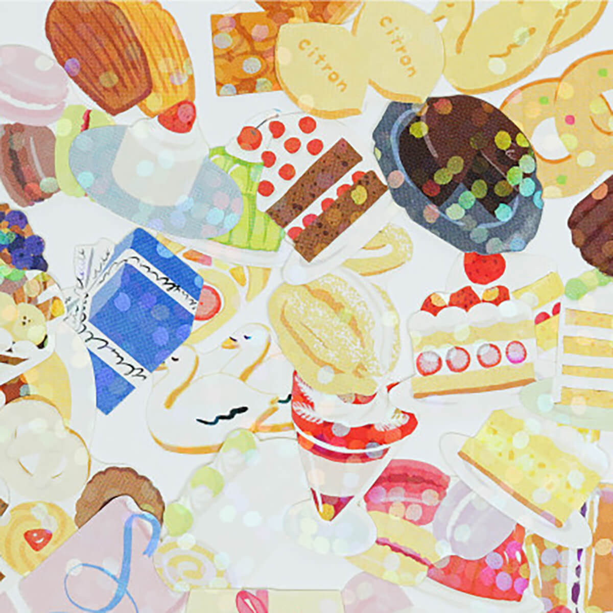 Confectionery Stickers by Haco. These really are the sweetest! Haco Japanese Sticker Boxes - Cute Patisserie, feature a delightful collection of approximately 40 hologram sweet treat stickers and they comes in a charming box, each sticker boasting a unique design. Whether you're adorning your notebook or jazzing up your correspondence, choosing which sticker to use is part of the fun. These Japanese-designed stickers are perfect for adding a quirky twist to your everyday essentials.