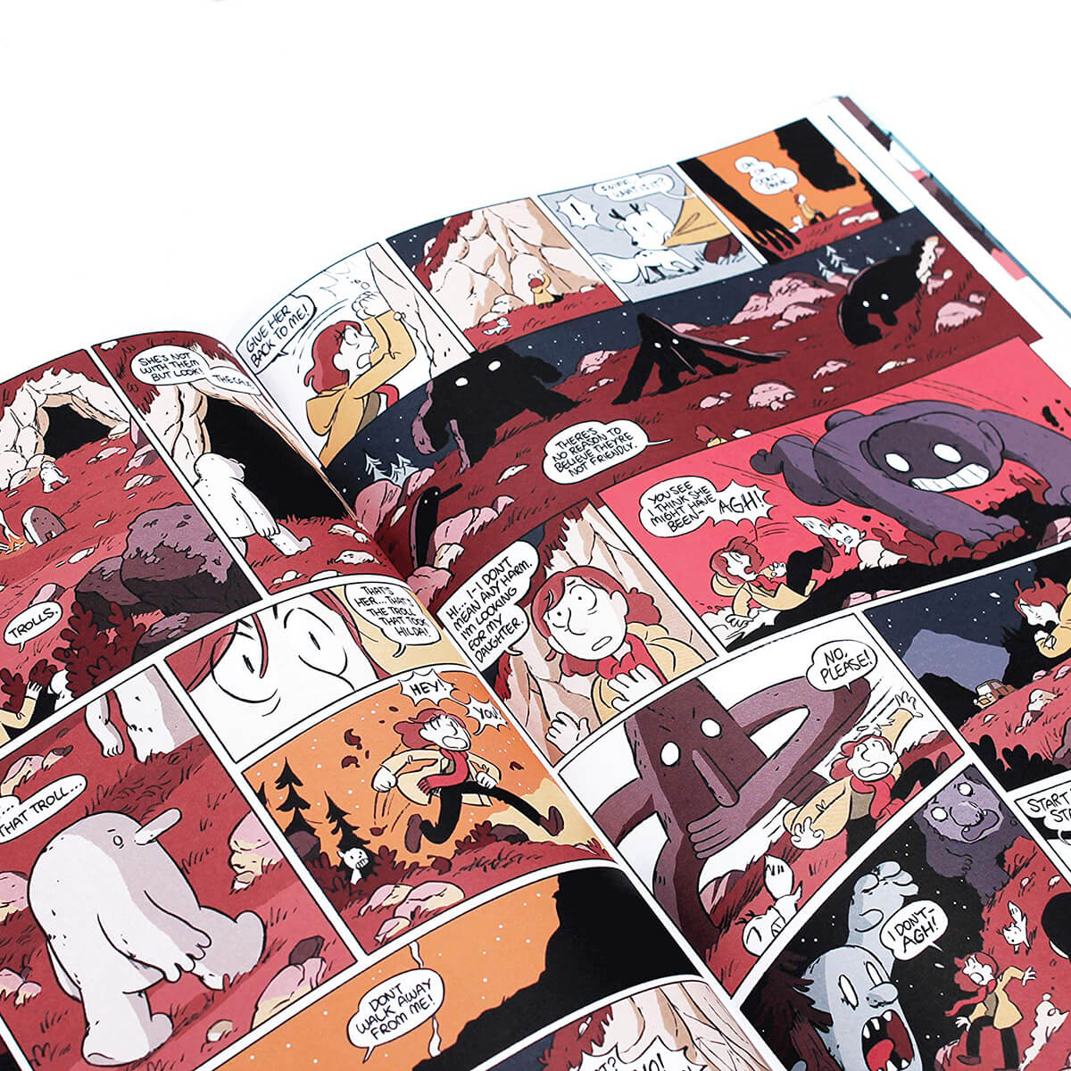 The newest book in the beloved Hilda series continues the action-packed adventures with our beloved Hilda stuck in the body of a troll trying to save all of human and troll-kind! See what perils await our beloved blue-haired adventurer in the sixth book of Luke Pearson's widely praised series. We rejoin our heroine for her latest adventure just as she awakes to find herself...in the body of a troll! Her mother is worried sick, and is perplexed by the strange creature that seems to have taken Hilda's place. Now, both of them are in a race to be reunited before Ahlberg and his safety patrol get the chance to use their new secret weapon to lay waste to the trolls, and Hilda along with them! The long-awaited conclusion to the Hilda graphic novel series by Luke Pearson.
