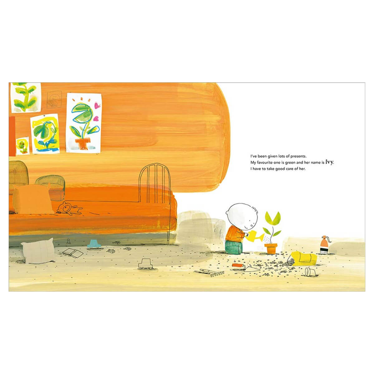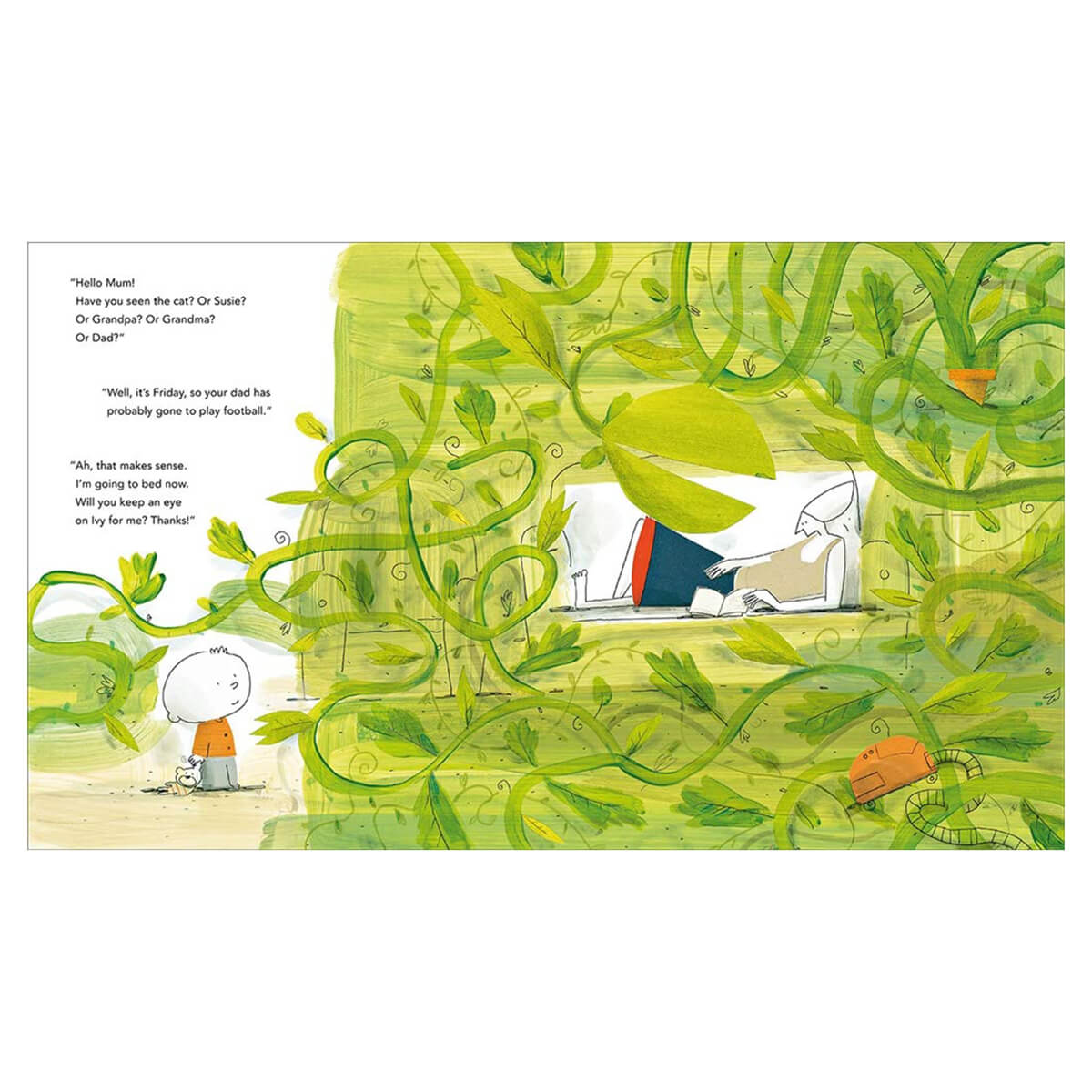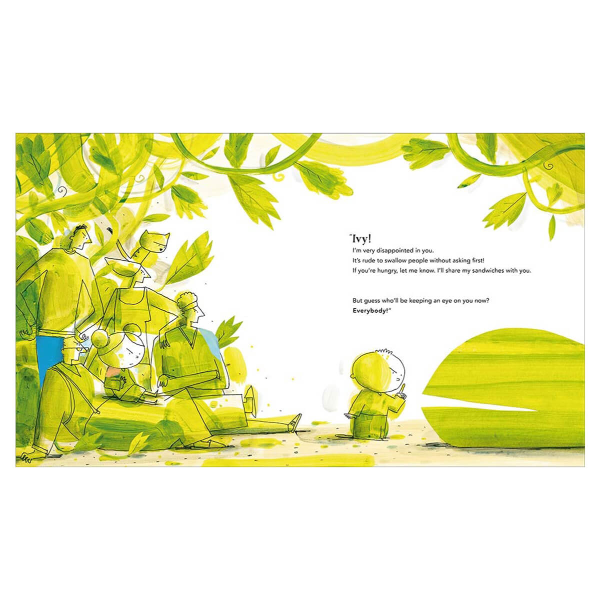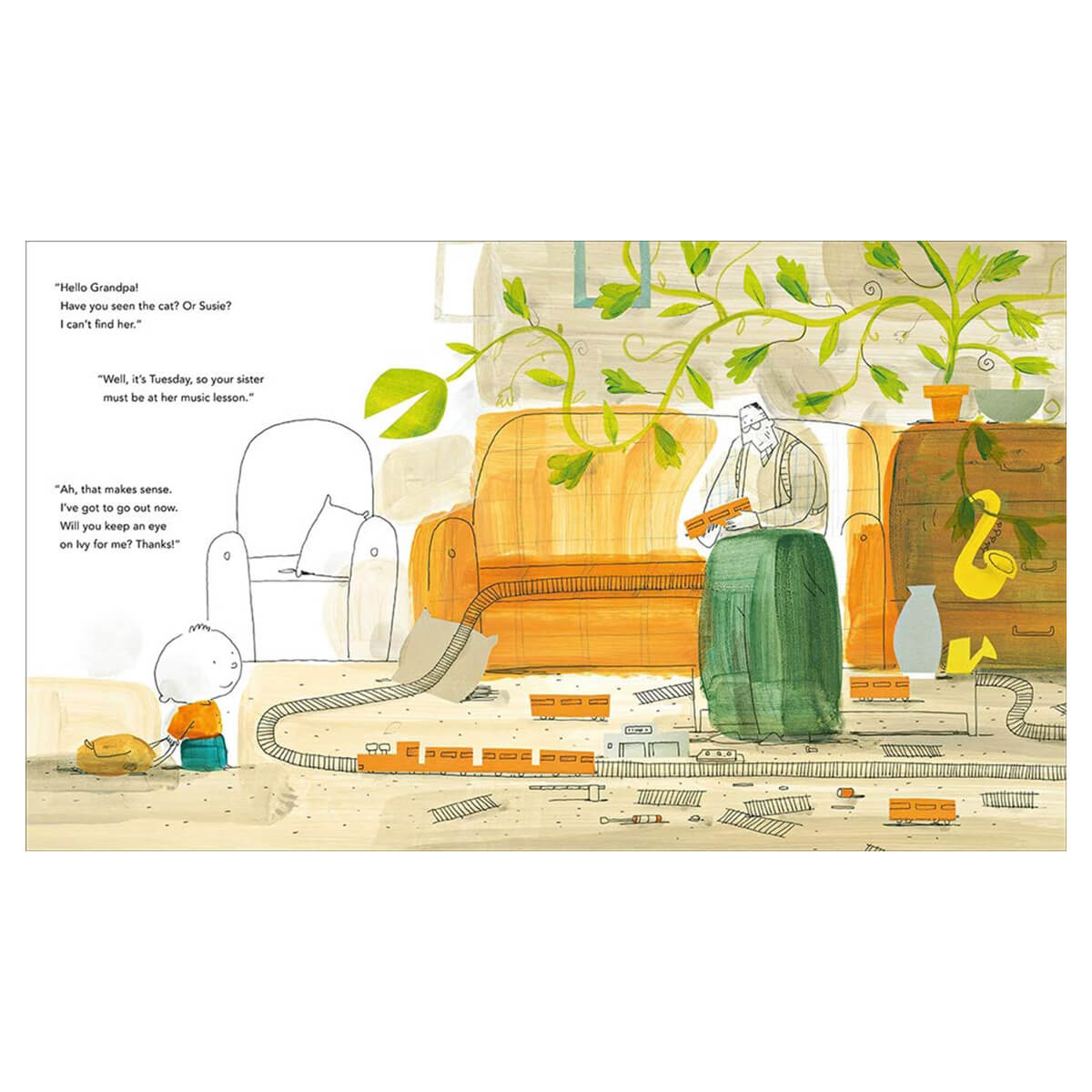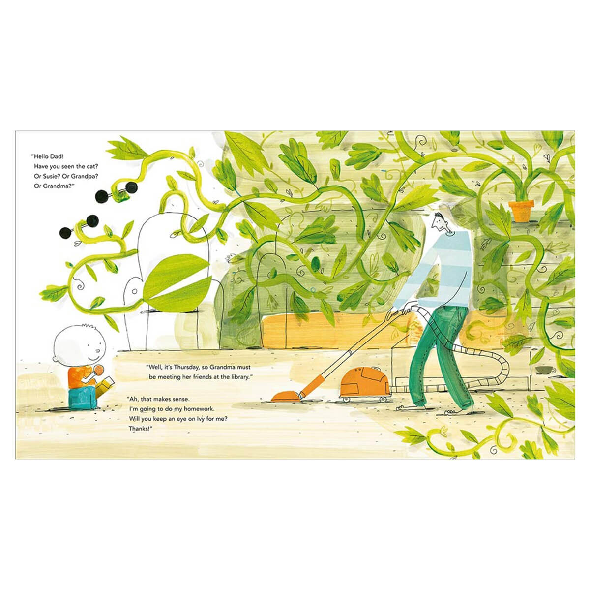 Sometimes we are lucky enough to receive a gift that exceeds all the rest and Ivy is one of those gifts! Ivy is a plant, but not just any a plant, an exotic one that needs care and attention every day. Hopefully, on Monday when the family is away, our sister can take care of Ivy. On Tuesday, our sister has disappeared, and our grandfather takes care of Ivy. On Wednesday, when our sister and grandfather have both disappeared, our grandmother takes care of Ivy. Day after day, Ivy grows bigger and bigger, while the house becomes more and more empty . . .