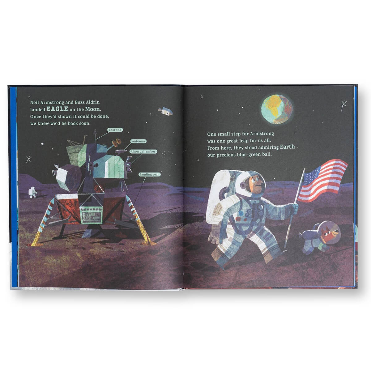 We look out of our window at the dark and twinkling sky. It's full of stars and planets and there's comets whooshing by. We want to go and see them, there's so much to explore. So let's count down and blast off - then we can find out more!