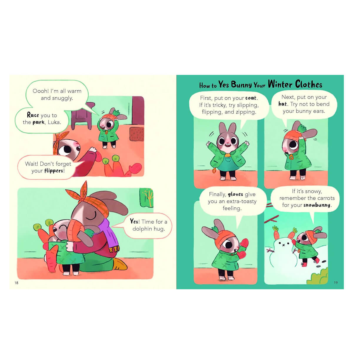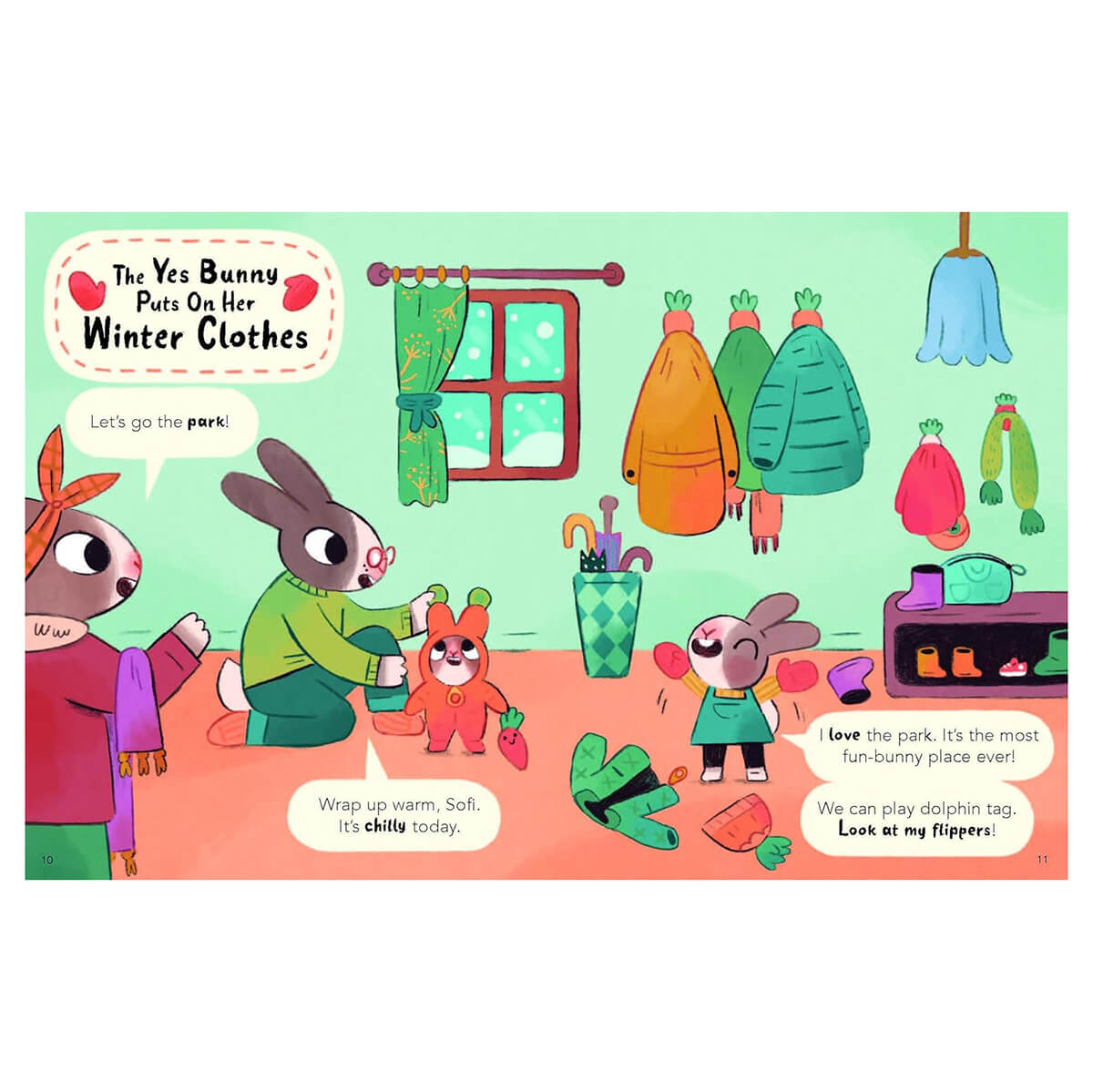 The Yes Bunny by Chris Parker and Ella Bailey. Meet the Yes Bunny: the bunny who says no to everything... except for having fun! She doesn't want to wash her bunny ears, she doesn't want to clean her room and she only brushes her big buck teeth for a single second... until one day she discovers that learning how to do things is actually quite FUN. With a little imagination she discovers that she can make her bunny ears into aeroplane wings in the shower; she can make her bed into a pirate carrot ship when she cleans her room; she can even have a toothpaste foam party when she brushes her teeth.