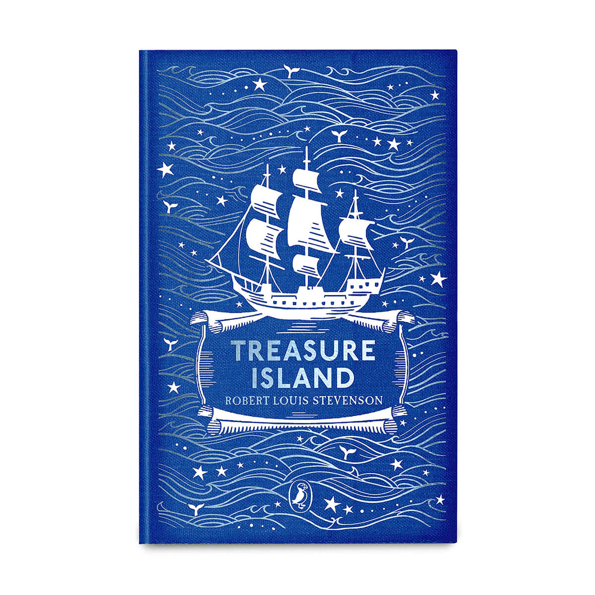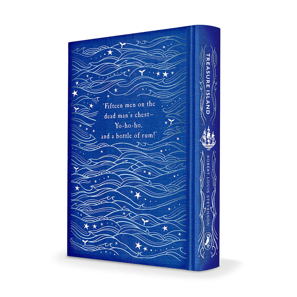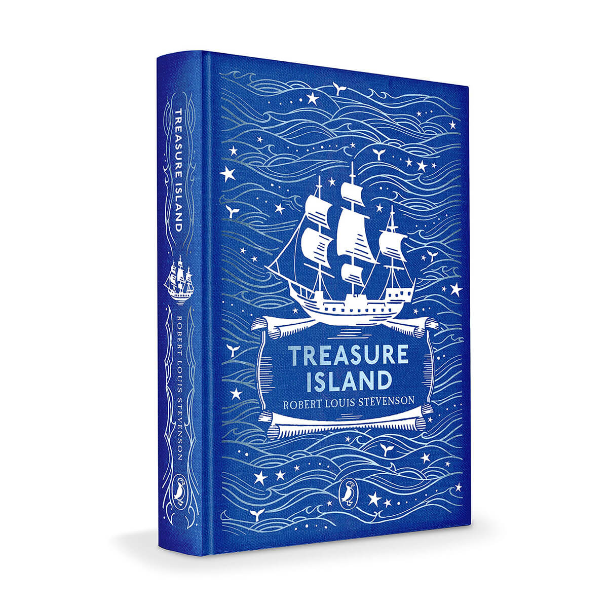 Treasure Island by Robert Louis Stevenson. One of six highly collectable clothbound hardback gift editions of Puffin children's classics featuring coloured foils on the cover and black and white line illustrations inside.
