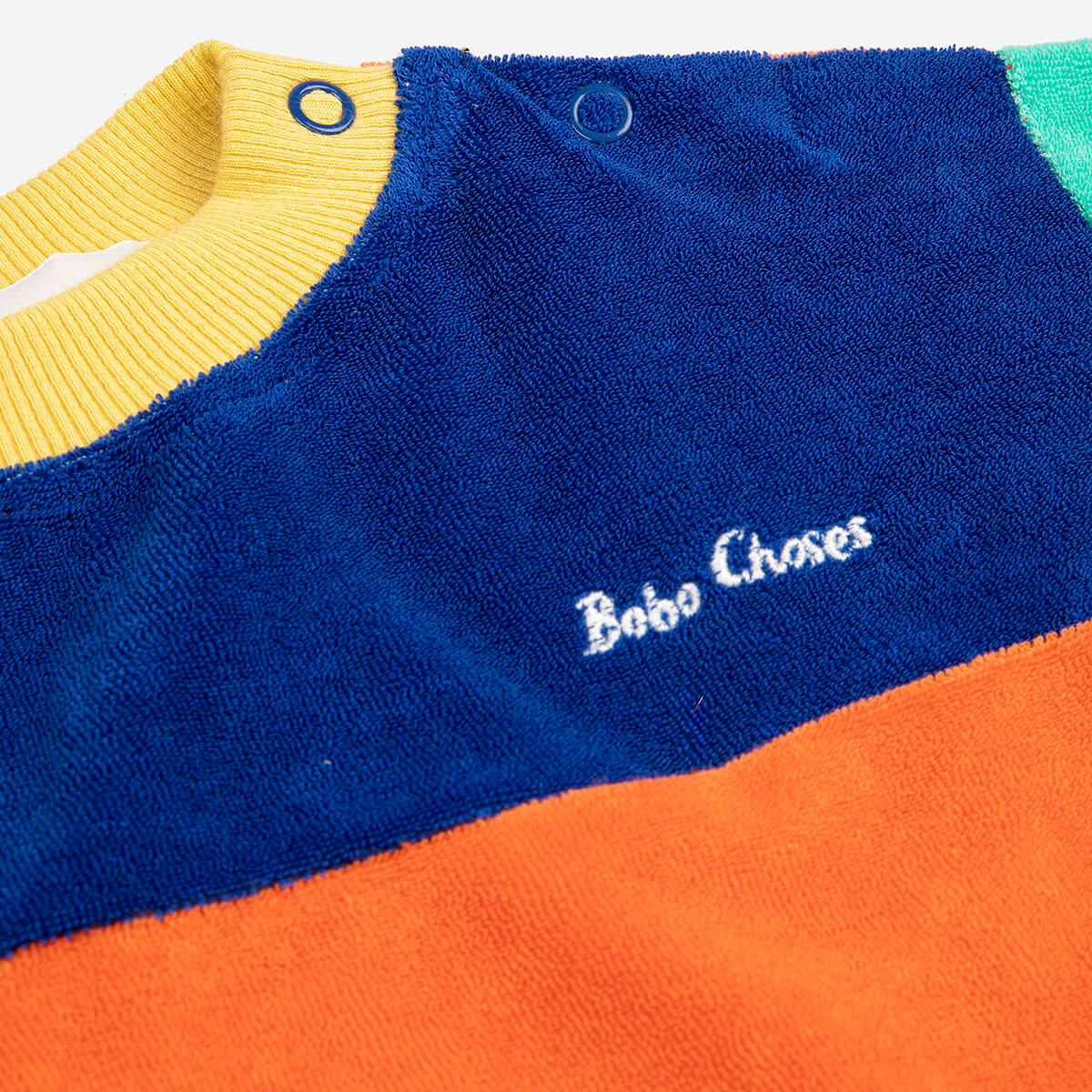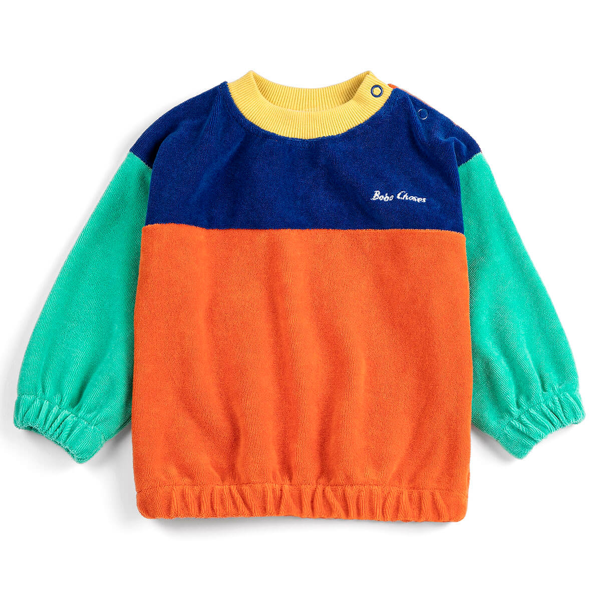 Bobo Choses Color Block Baby Sweatshirt by Bobo Choses. Multicolour sweatshirt designed with long sleeves, dropped shoulder, shoulder snap fastening, elasticated bottom, elasticated cuffs, embroidery in a loose fit and with a round neck.