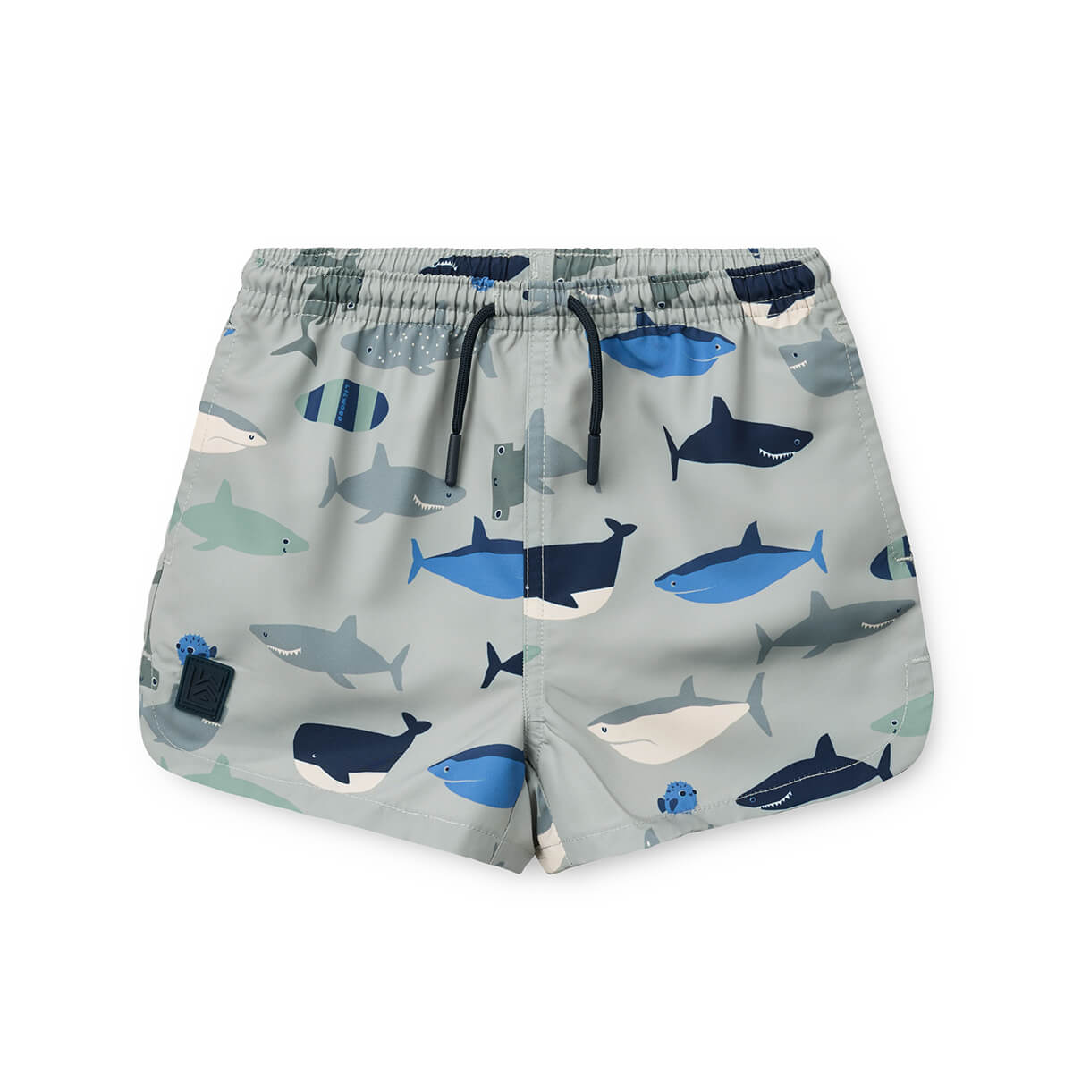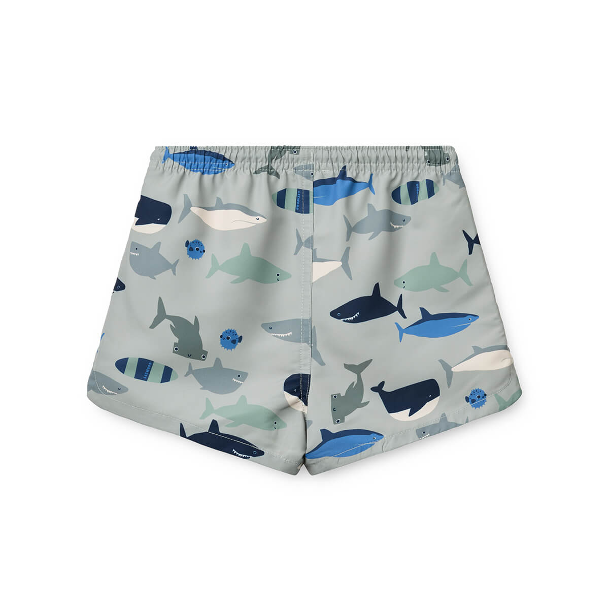Aiden Printed Board Shorts in Shark / Dove Blue by Liewood