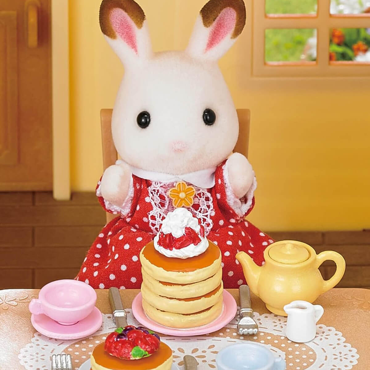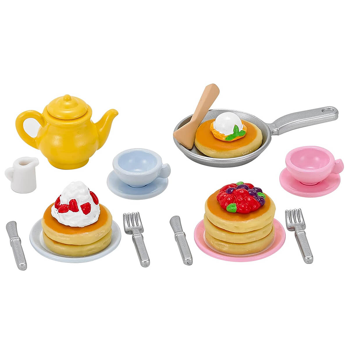 Homemade Pancake Set by Sylvanian Families. What could be better than pancakes? This tasty set is perfect for making breakfast for the whole family! Including six pancakes and three kinds of delicious toppings, it has everything your Sylvanians need to make and nibble on these yummy breakfast treats. It includes utensils, cutlery and a teapot too of course - you can't have pancakes without tea!