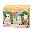 Latte Cat Family by Sylvanian Families. Introducing the Latte Cat Family, a gorgeous litter of Latte Cats heading to Sylvania village! This four figure set features Father, Mateo Fontana, and Mother, Daniela Fontana, along with two of their children, Daughter Monica Fontana and Baby Boy Pino Fontana. The Fontanas are a stylish and active bunch of cats who love nothing more than heading into town to check out the latest fashions then grabbing themselves a coffee and some sweet treats on the way home. Each figure has poseable arms, legs and head plus can hold their own shopping bags, coffee cup or treat in their paws! Special flocking on the figures creates a gorgeous and realistic fur texture for these adorable new characters. The set also includes a number of super fun play accessories, including two coffee cups, a waffle, plate and a shopping bag.
