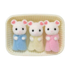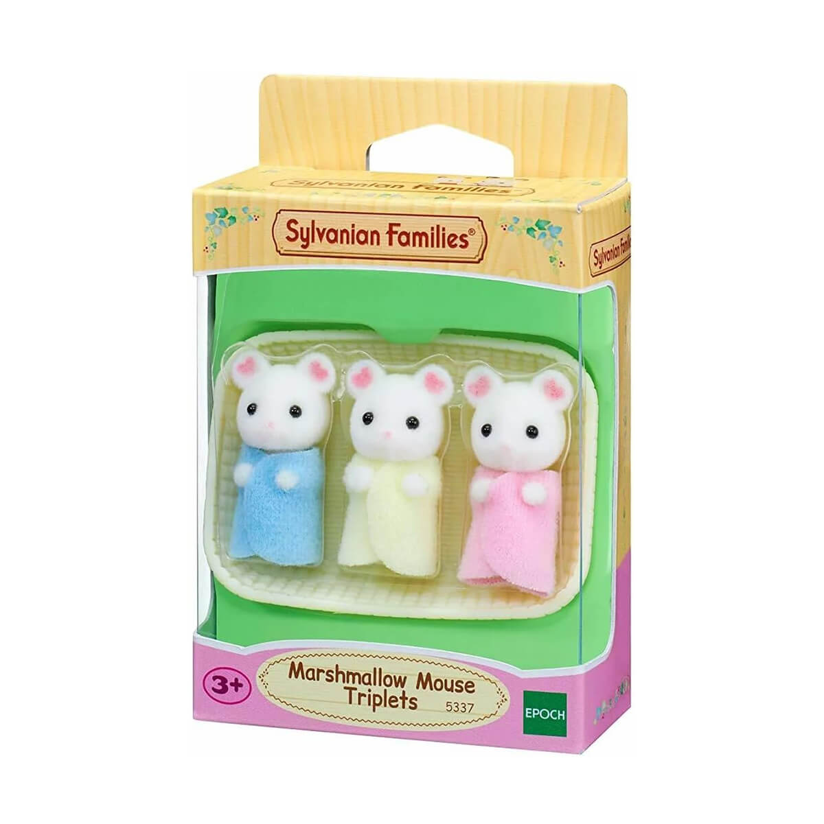 Marshmallow Mouse Triplets by Sylvanian Families. Marshmallow Mouse Triplets are dressed in removable clothing. You can have all three triplets sleep in the included cradle. Mary Marshmallow Mouse is a ball of energy. She's always on the go, and can often be seen laughing with Elizabeth. Edward Marshmallow Mouse is a sleepyhead. While Mary and Elizabeth are often heard laughing, Edward just nods off! Elizabeth Marshmallow Mouse is always in a good mood. Whenever she sees Mary doing something fun, she can't help tagging along!