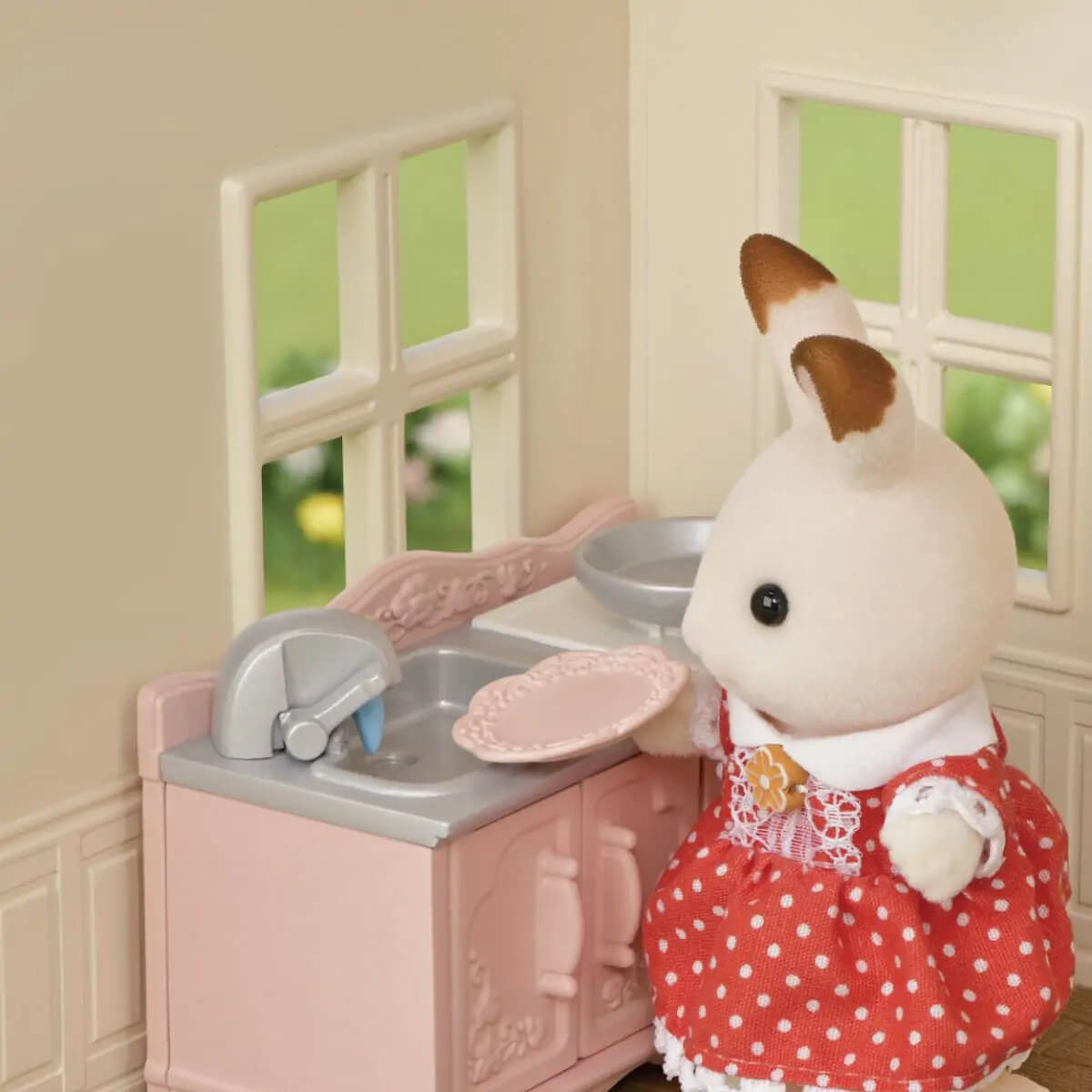 Red Roof Cosy Cottage by Sylvanian Families. The Red Roof Cosy Cottage is perfect for anyone new to Sylvanian Families. This set contains a house, basic furniture and figure (Chocolate Rabbit girl), and can be played with on its own. The kitchen also comes with fun gimmicks and you can bake apple pie or pour water from the tap. Use the post box and parcel to send and receive post!