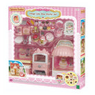 Village Cake Shop Starter Set by Sylvanian Families. This fantastic value set contains over thirty pieces for hours of role play fun featuring new and custom accessories. With lots of fun elements, including a stand mixer, oven, cake stand and display case plus a frilly apron with matching headband so you can dress your favourite Sylvanian Families figure as a master patissier in their very own shop! Enjoy playing pretend with this cake shop set that includes an oven that bakes sponge cakes and a variety of cake decorations. Once the sponge cakes are baked, decorate them with cream and toppings to make all kinds of cakes. There are more than 100 different combinations of decorations! Arrange the cakes in the display case and on the display table. Cakes can be picked up with the tongs and placed in a box for the customers to take home. The headband and apron can be placed on other child and adult figures (sold separately). The awning, decorations and display table can be added to the Red Roof Cosy Cottage Starter Home (sold separately) to turn the house into a cake shop. Combine with the Family Picnic Van (sold separately) to make a mobile cake shop. Combine with the Baking Baby Party Series (sold separately) for even more fun cake shop playtime!