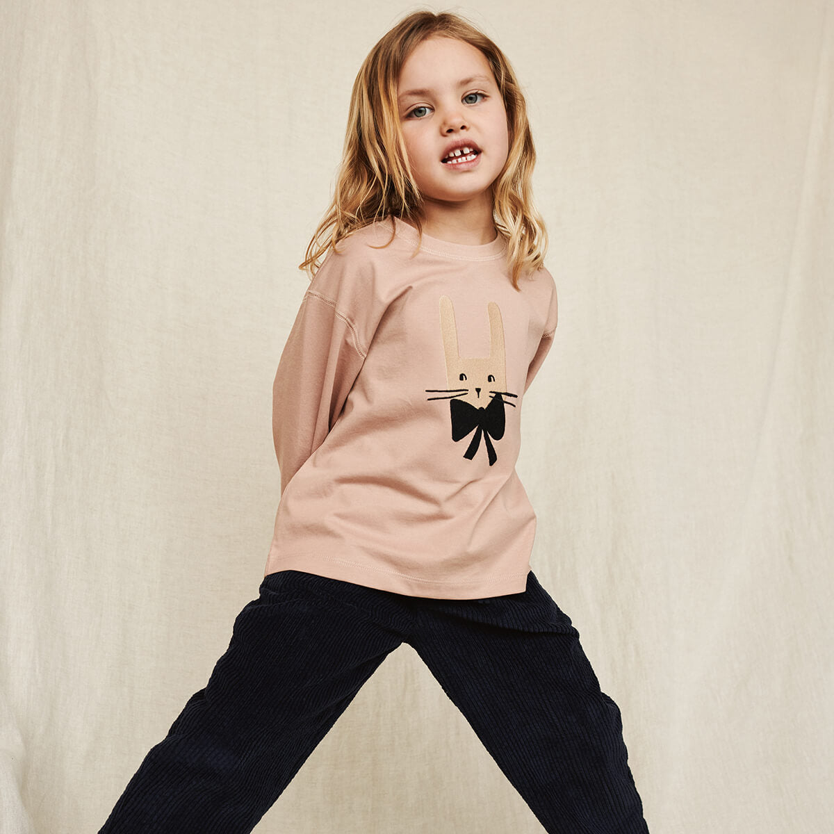 Apia placement print long sleeve T shirt by Liewood. A classic and comfortable long sleeved t-shirt with a fun rabbit embroidery detail.