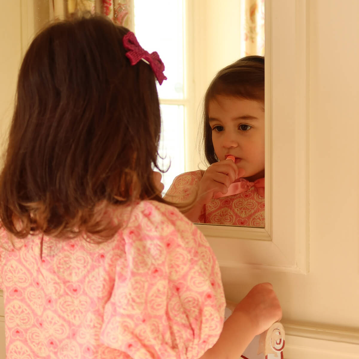 Ava Short Sleeved Blouse by Konges Slojd. Blouse with short puff sleeves and a subtle peplum detail. Designed with a small bow at the neckline.