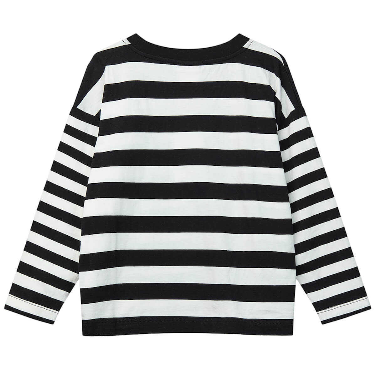 Duet Tee by Wynken. Made from lightweight, breathable, certified,100% organic cotton, this long-sleeved T-shirt is ideal for active children. With all-over Wynken stripes, it looks great with skirts, jeans or leggings and is ready for whatever adventure comes next! The dropped shoulders provide a relaxed fit that is as comfortable as it is stylish. It's an effortless layering essential for little trendsetters.