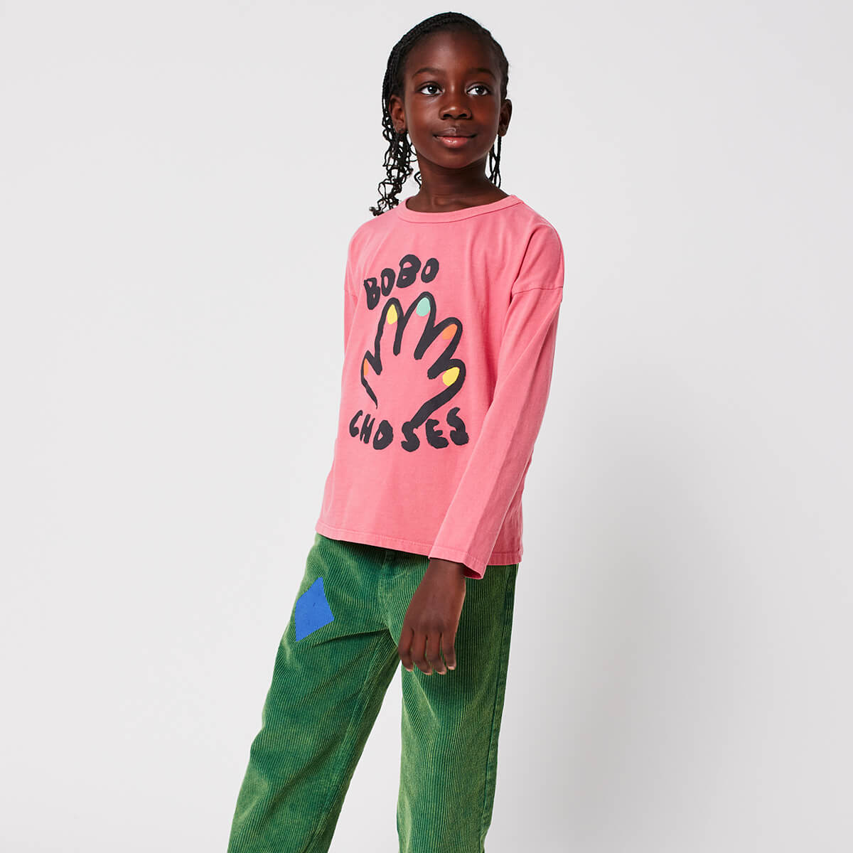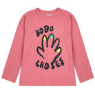 High Five Long Sleeve T-Shirt by Bobo Choses. Bright and fun, this loose fit pink tee is designed for everyday comfort. Made from 100% organic cotton, it features short sleeves and a round neck.